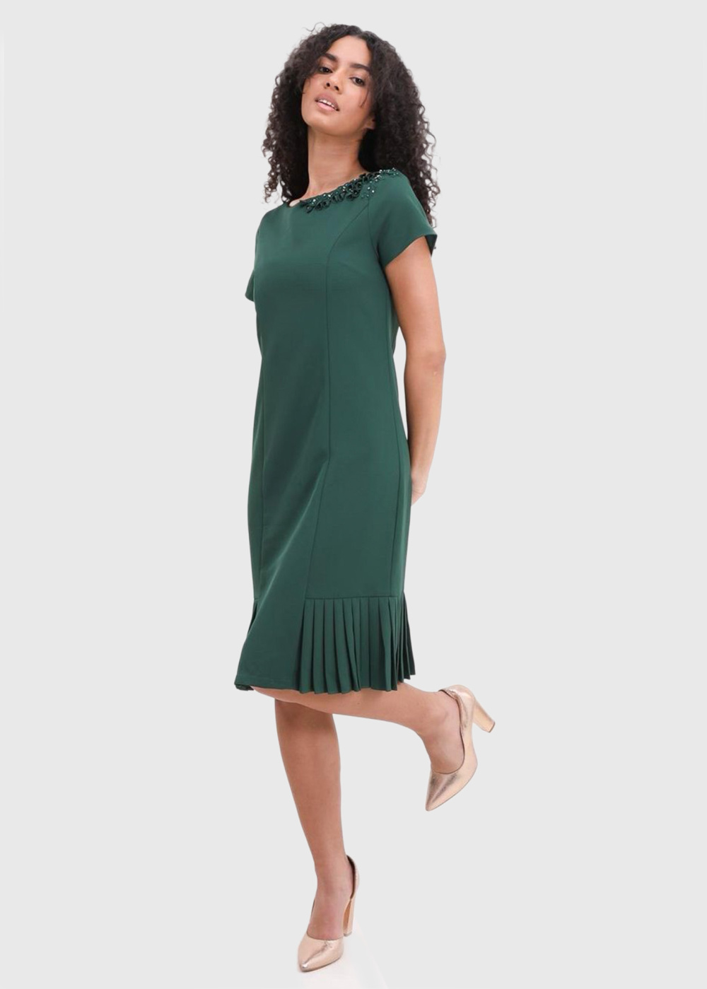 Gunesh zaļa vakarkleita ar īsām piedurknēm