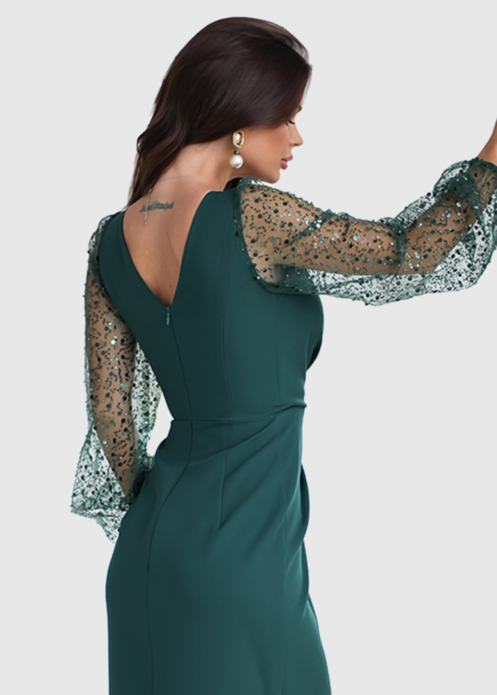 Zafina zaļa vakarkleita ar šķēlumu