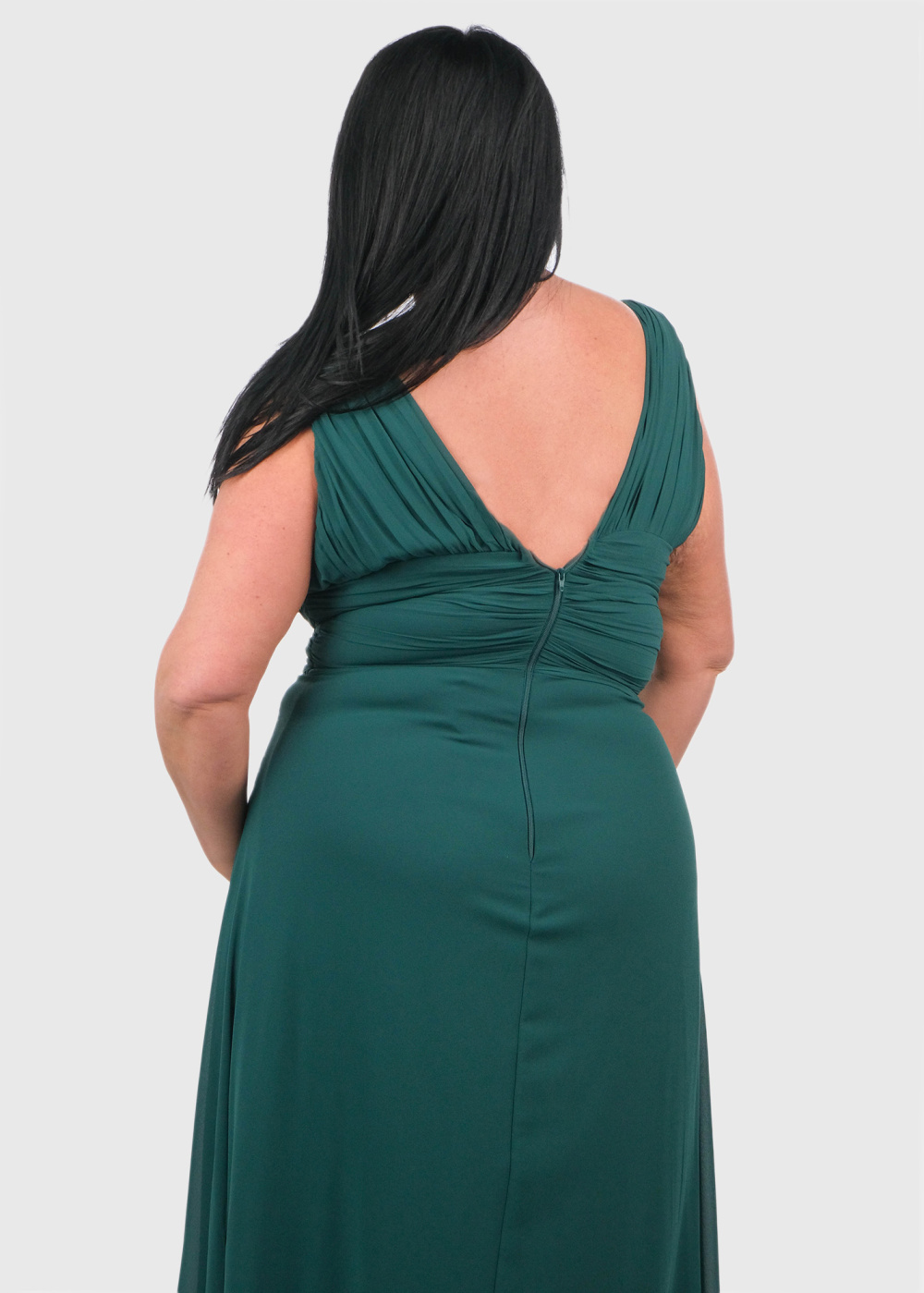 Izel Lielo izmēru tumši zaļa gara vakarkleita ar šķēlumu