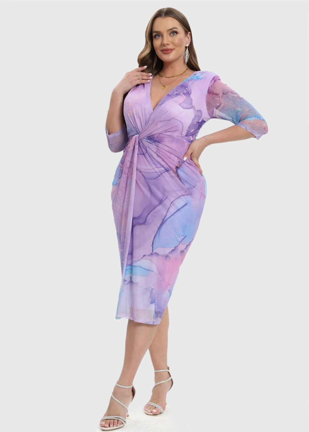 Jennifer Lielo izmēru violeta vakarkleita ar rakstu