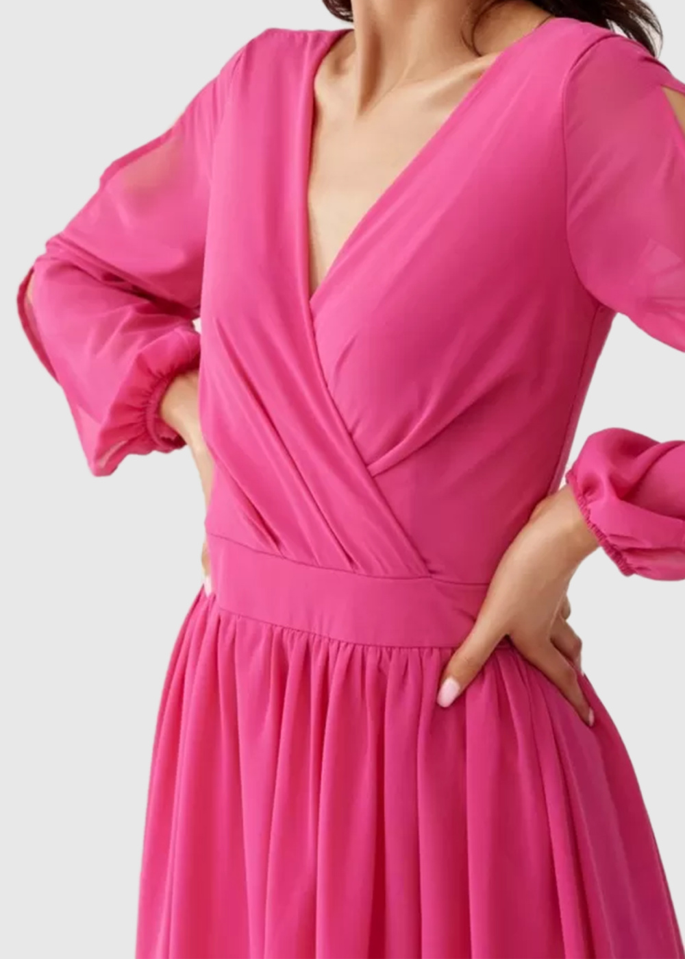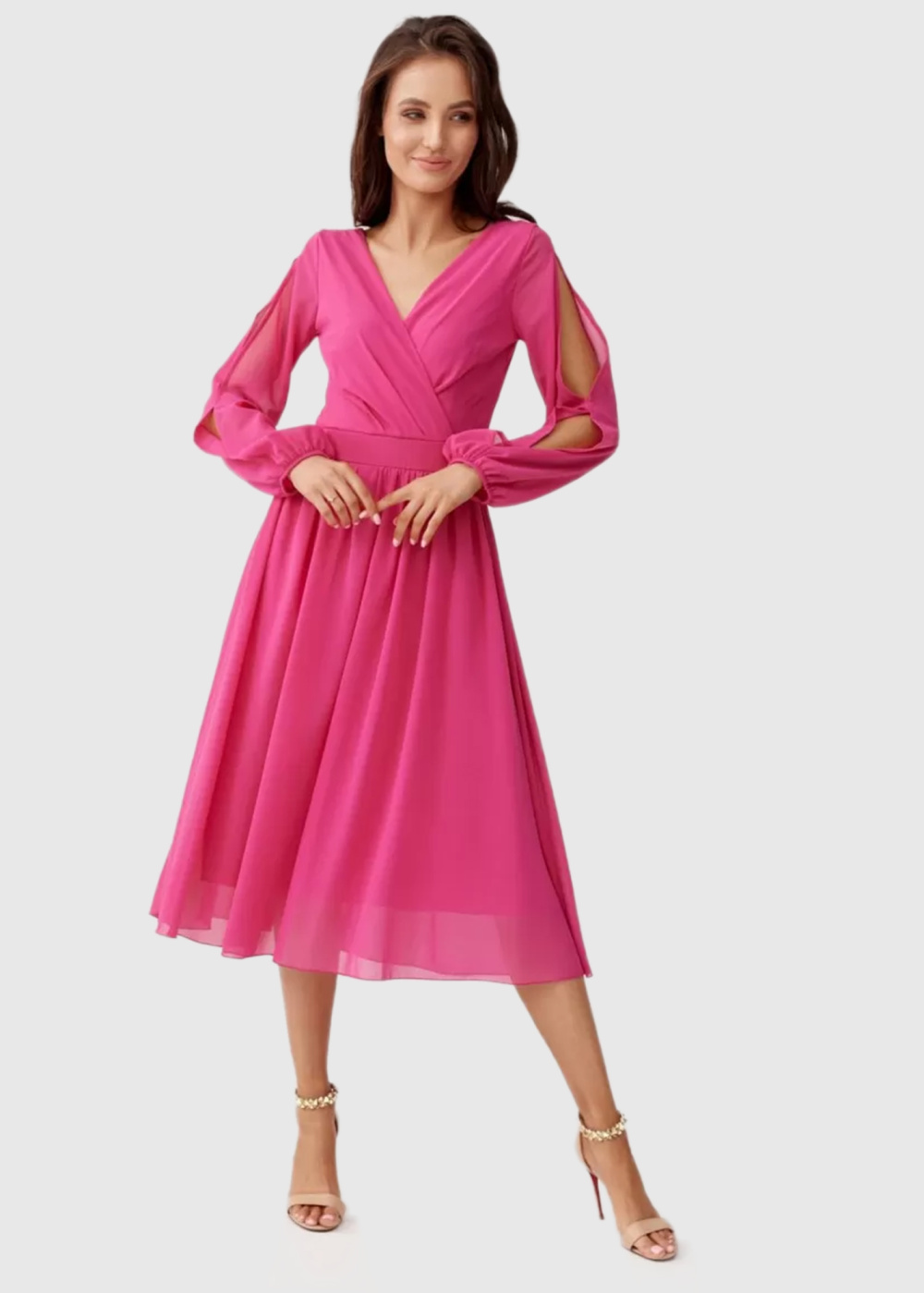 Kelly rozā vakarkleita ar garām piedurknēm