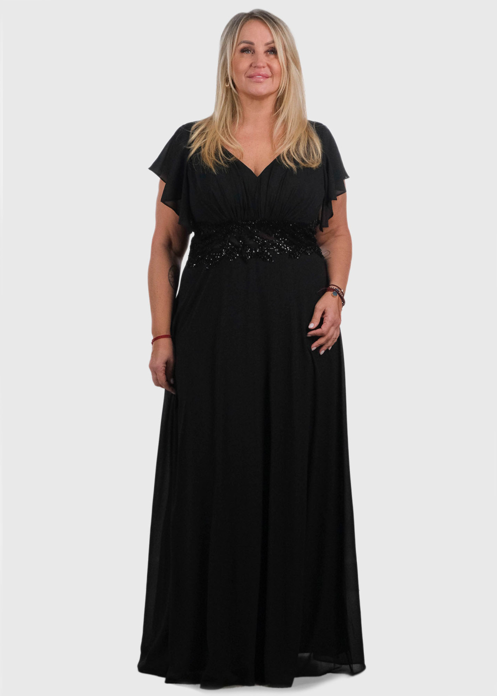 Dominika Lielo izmēru melna gara vakarkleita