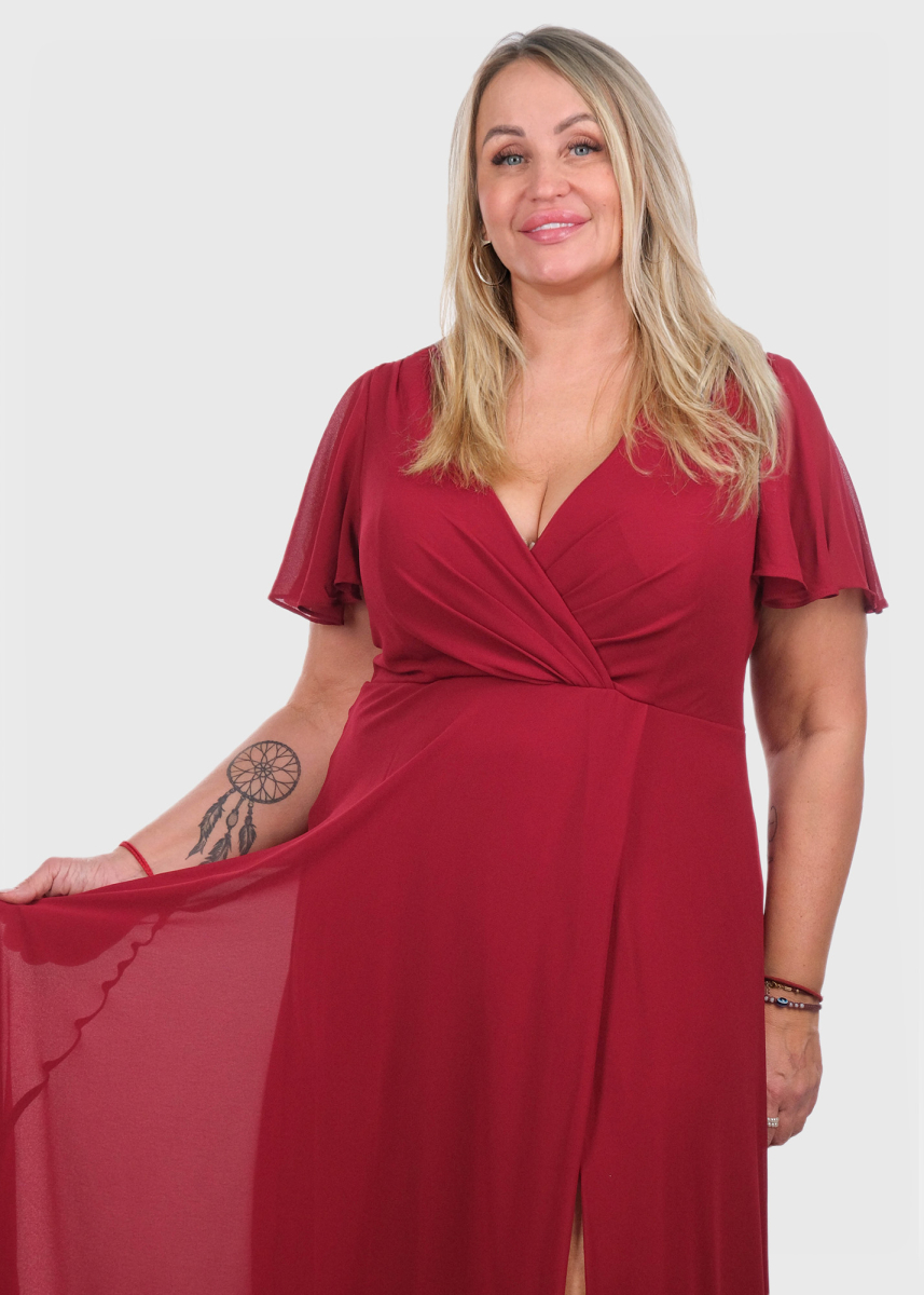 Edina Lielo izmēru sarkana gara vakarkleita ar šķēlumu