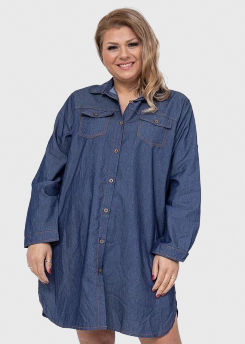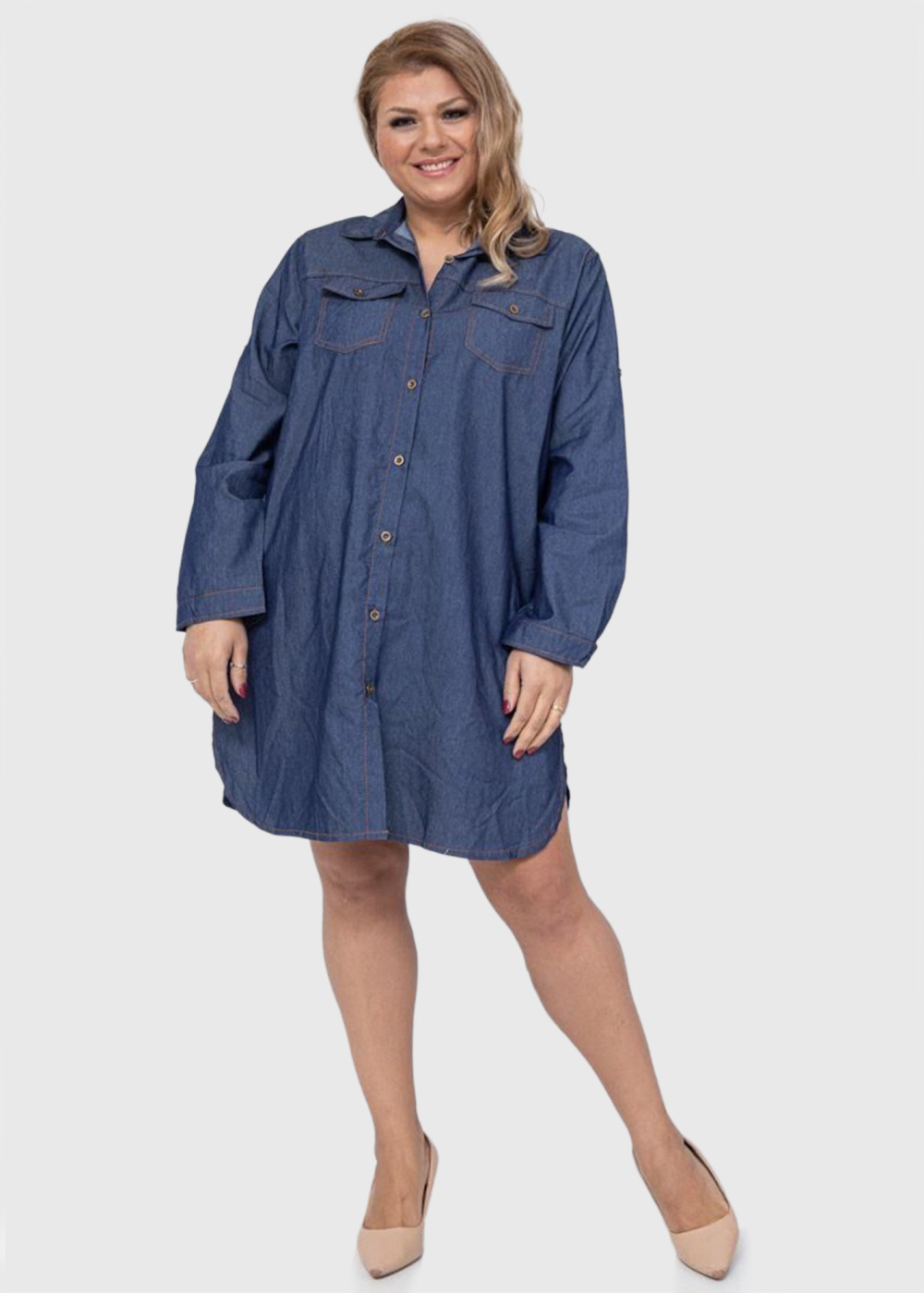 Saule Lielo izmēru tumši zila kleita ar pogām