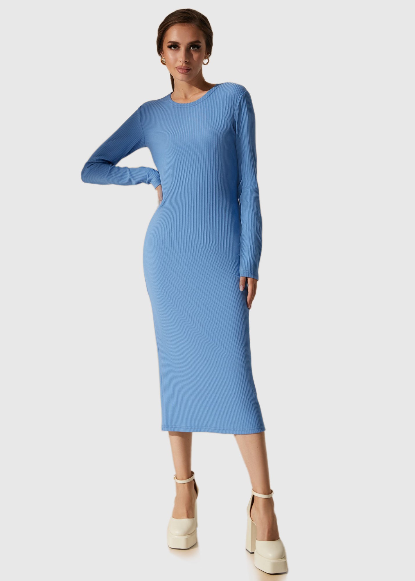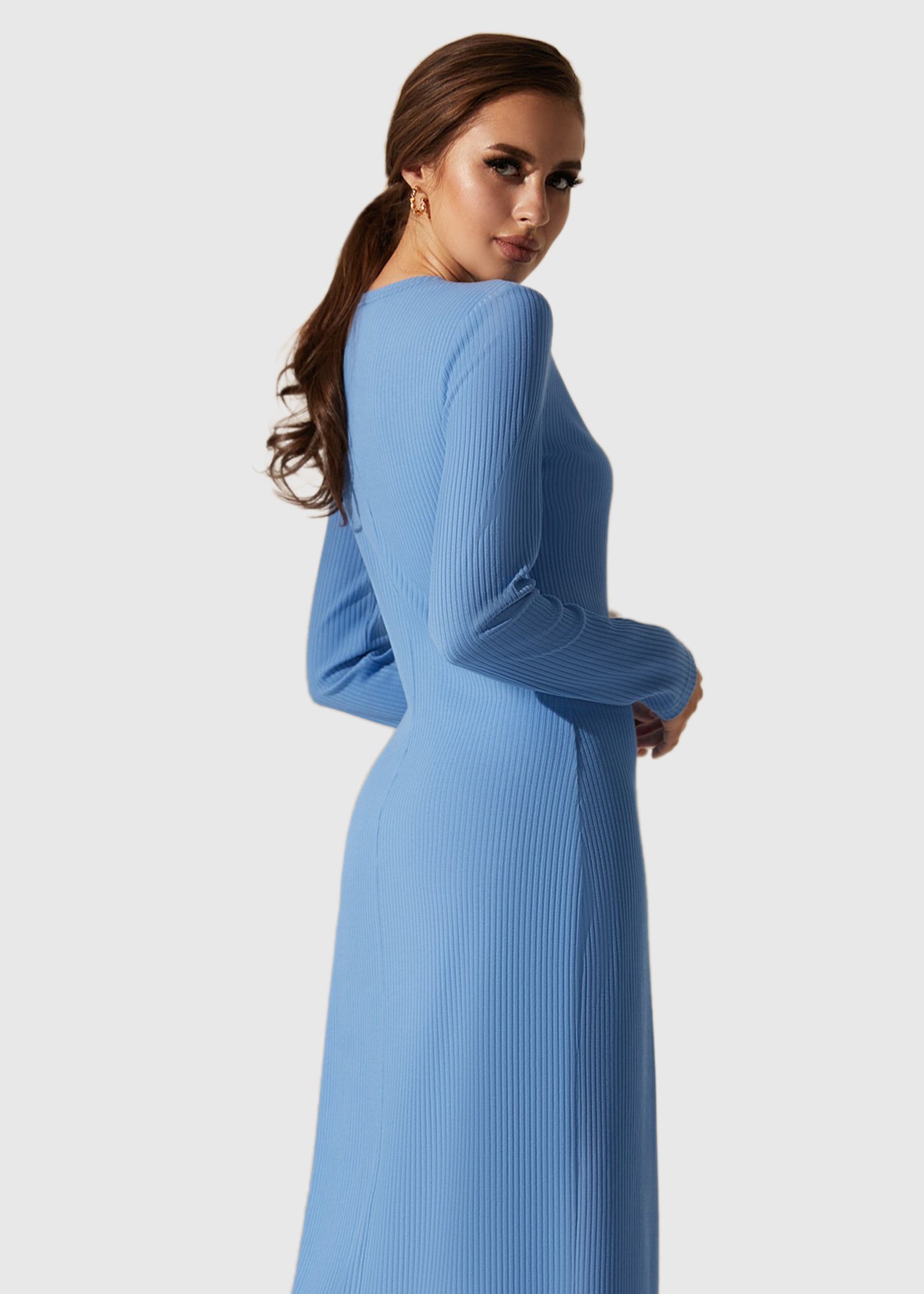 Zila kleita ar garām piedurknēm