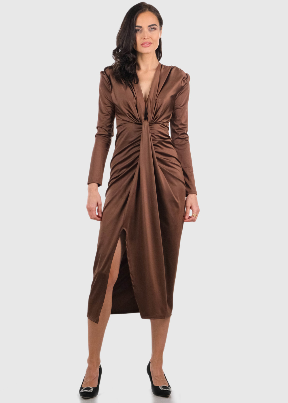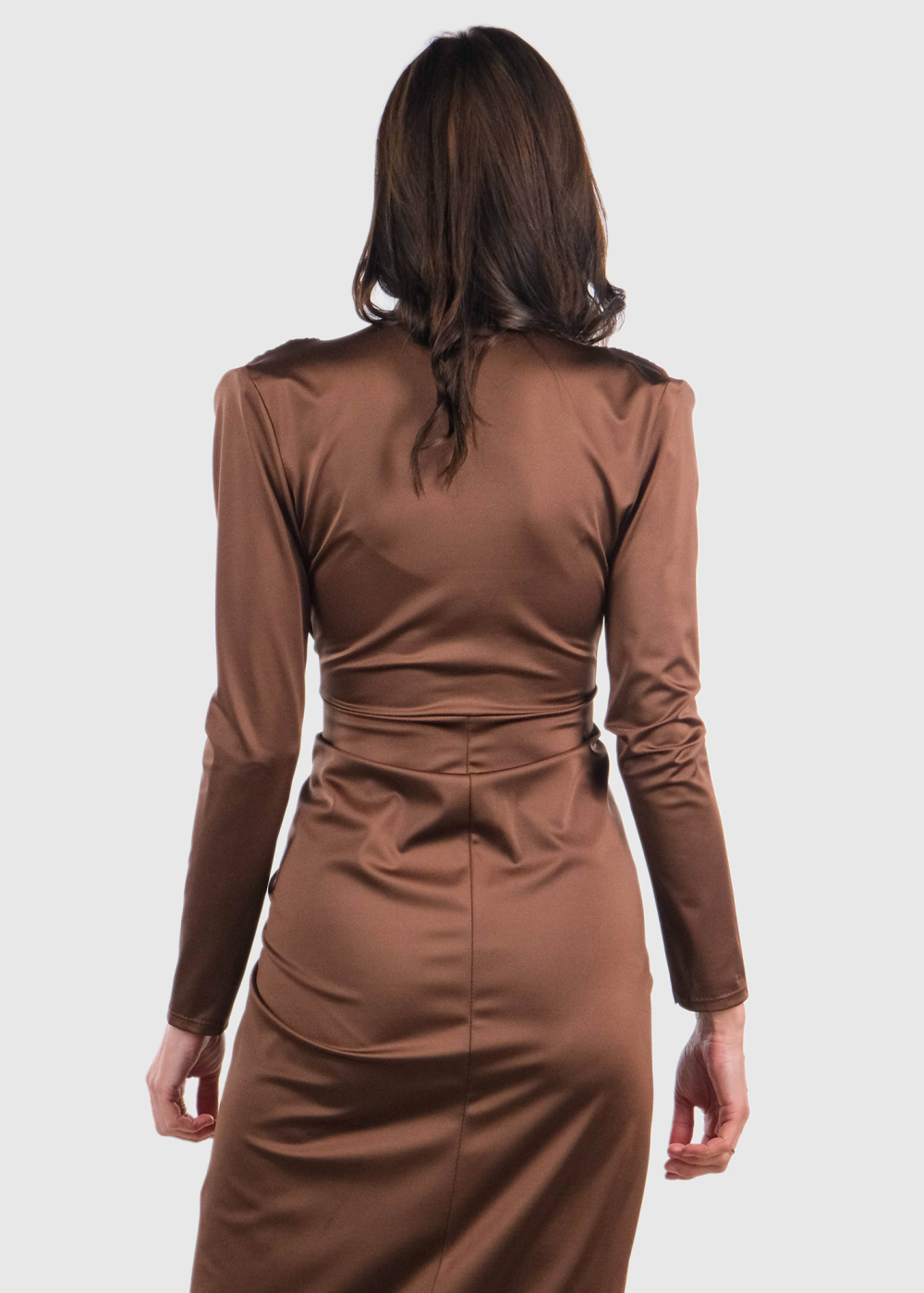 Zlata tumši brūna vakarkleita ar garām piedurknēm