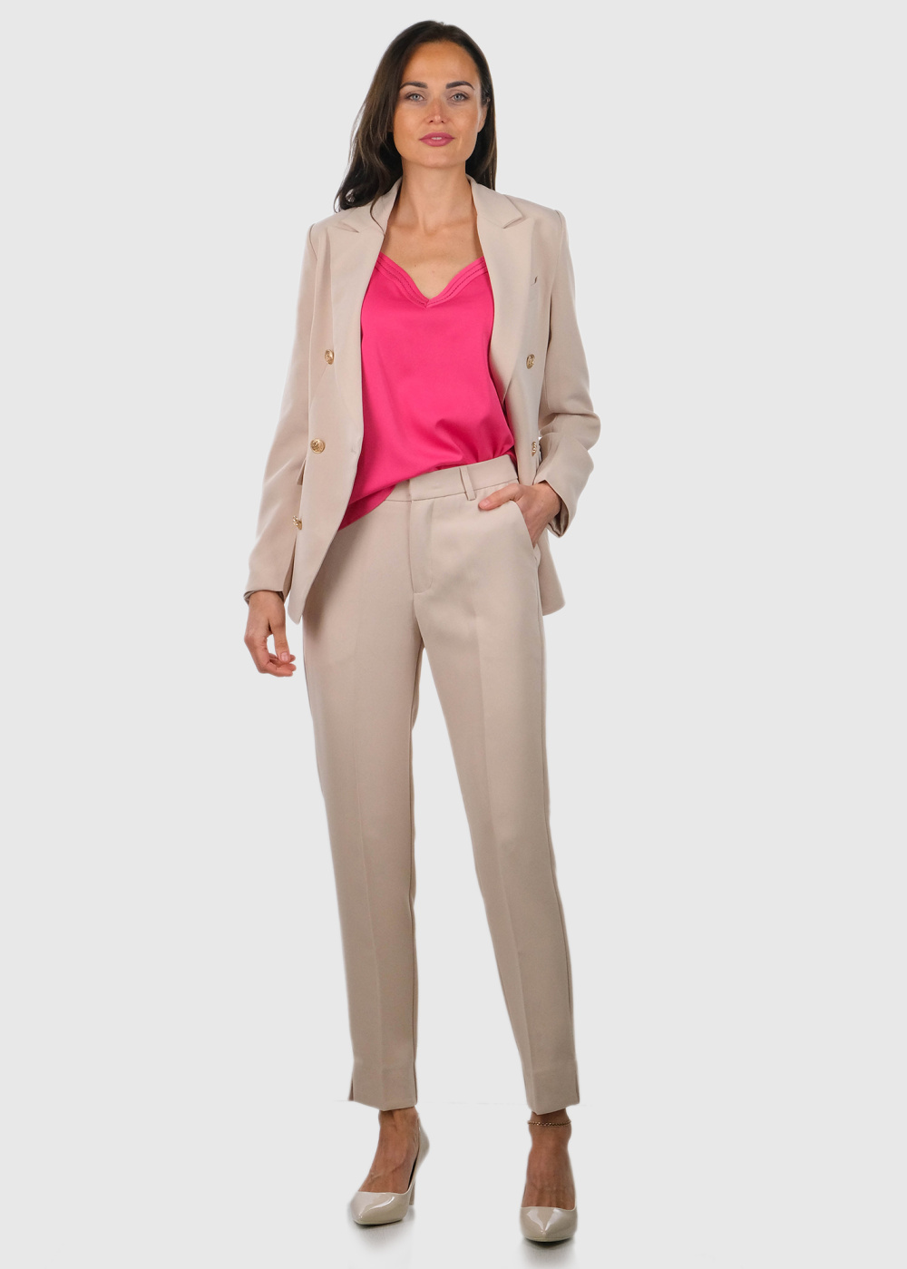 Brenda bēšas sieviešu bikses ar kabatām