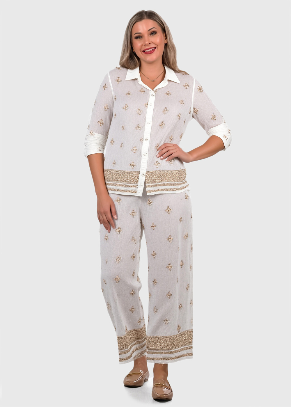 Katla balts sieviešu kostīms ar rakstu