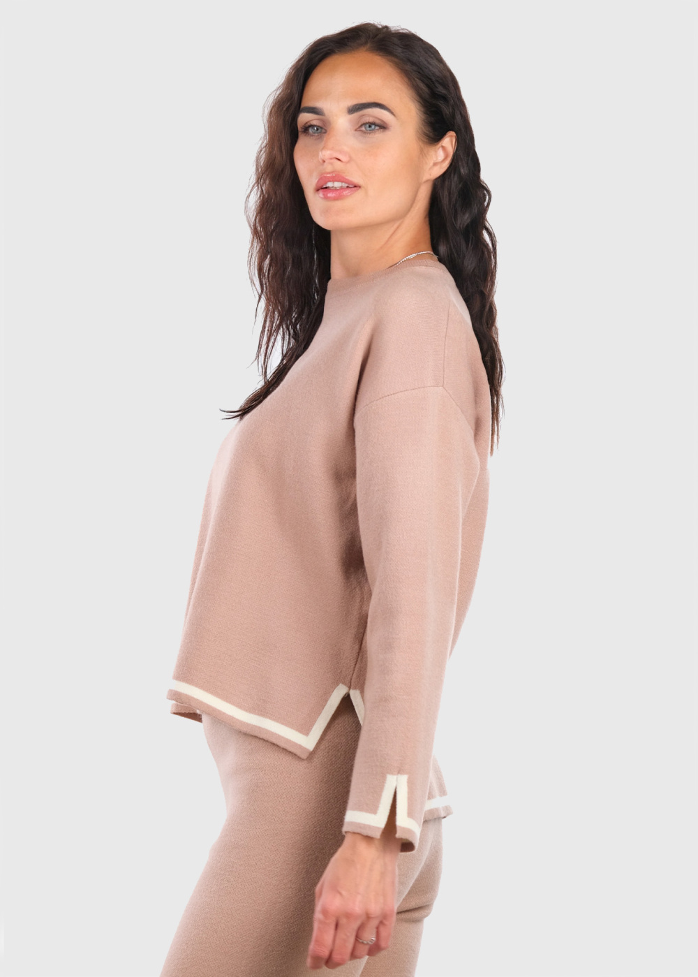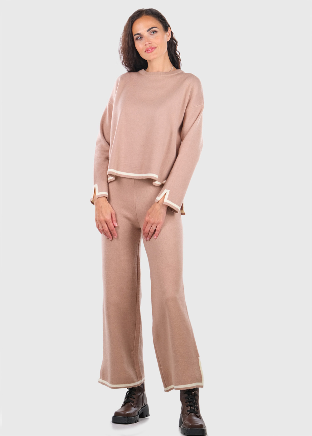 Kiona bēšs kostīms ar šķēlumiem sānos