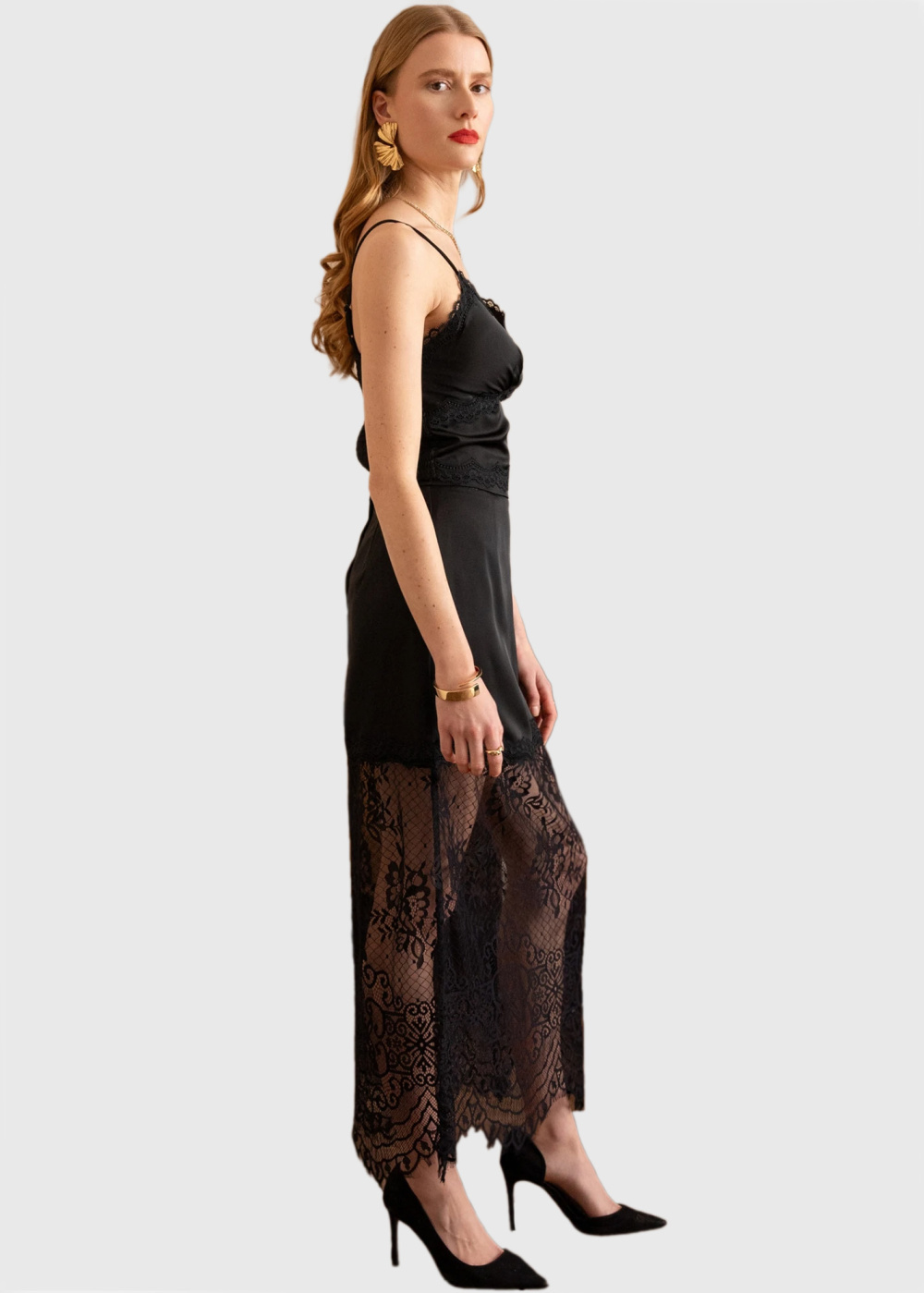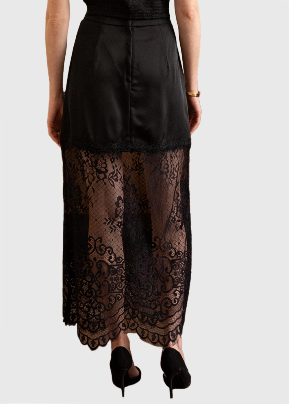 Timea melni gari mežģīņu svārki