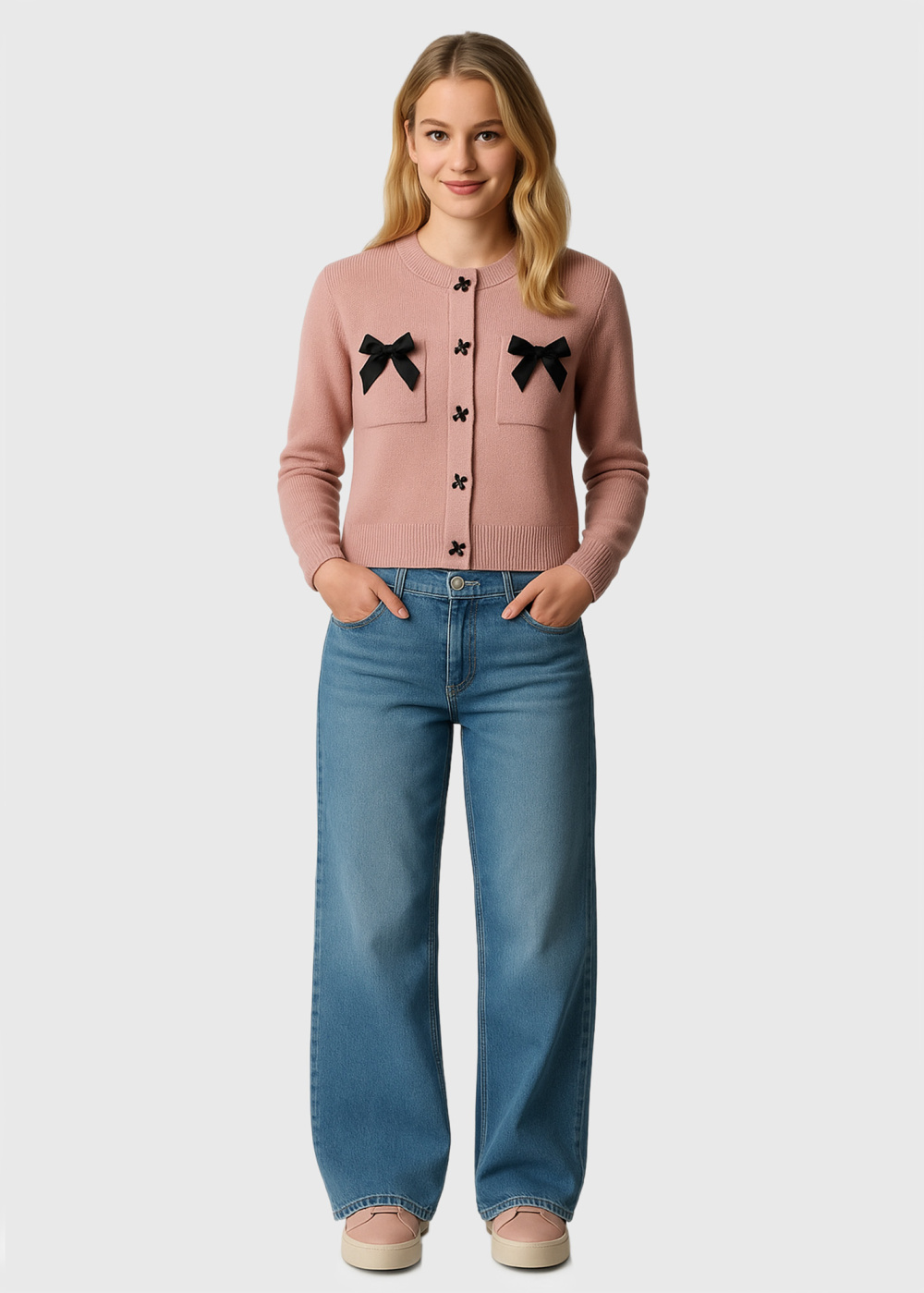 Lily rozā džemperis ar bantēm