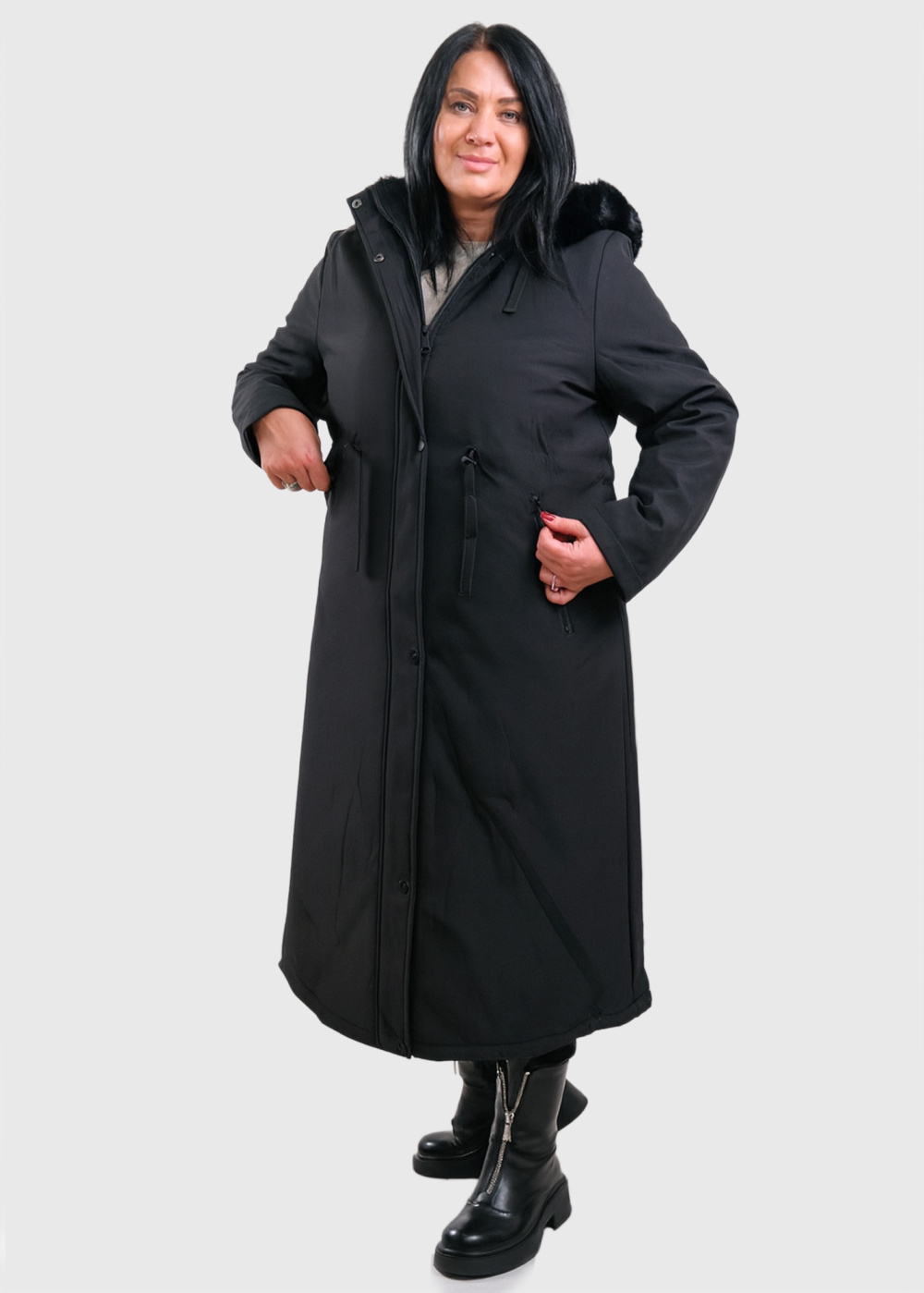 Mikaela Lielo izmēru melna jaka ar aukliņas aizdari