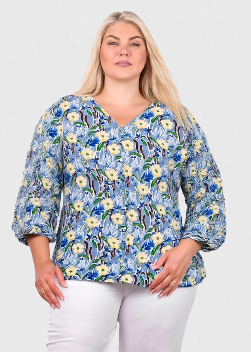 Kalyani Lielo izmēru zila blūze ar ziedu rakstu