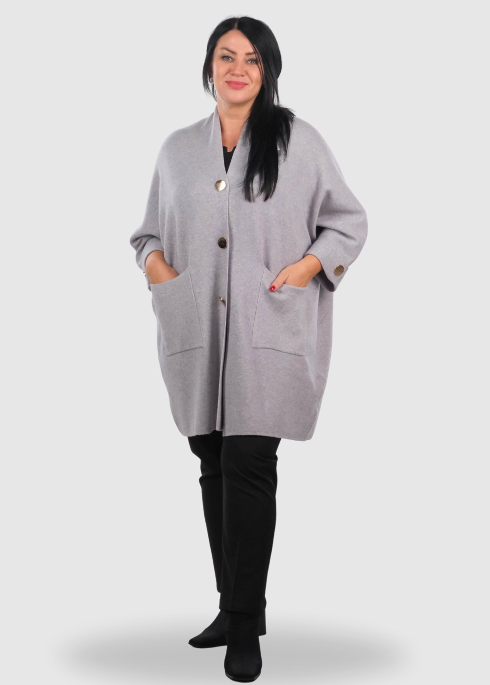 Jonna Lielo izmēru pelēks kardigans ar pogām