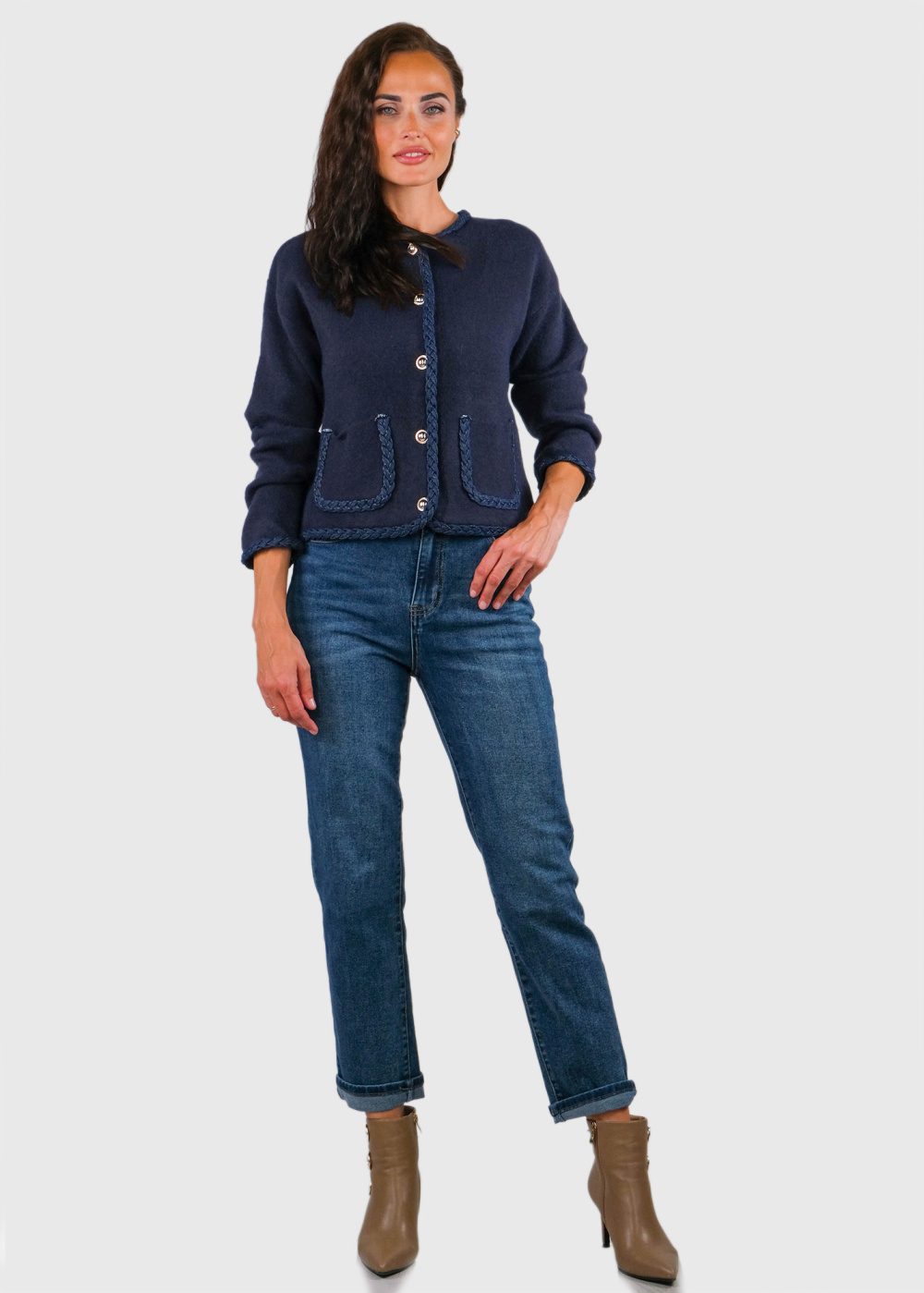 Zalina tumši zils kardigans ar kabatām