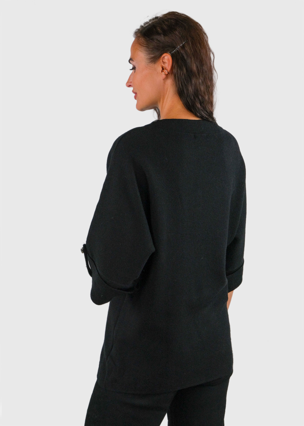 Lula Lielo izmēru melna gara jaka ar aukliņas aizdari Lula Lielo izmēru melna gara jaka ar aukliņas aizdari  - back Lula Lielo izmēru melna gara jaka ar aukliņas aizdari