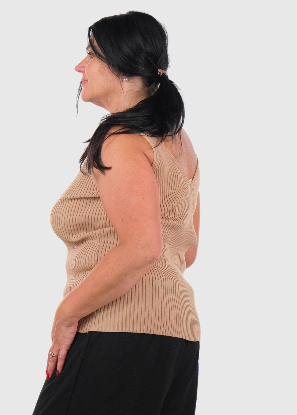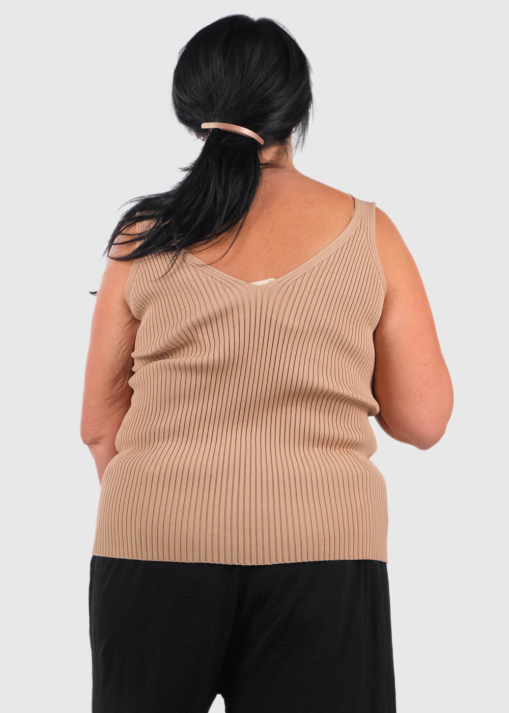Ayush bēšs tops ar V-veida izgriezumu