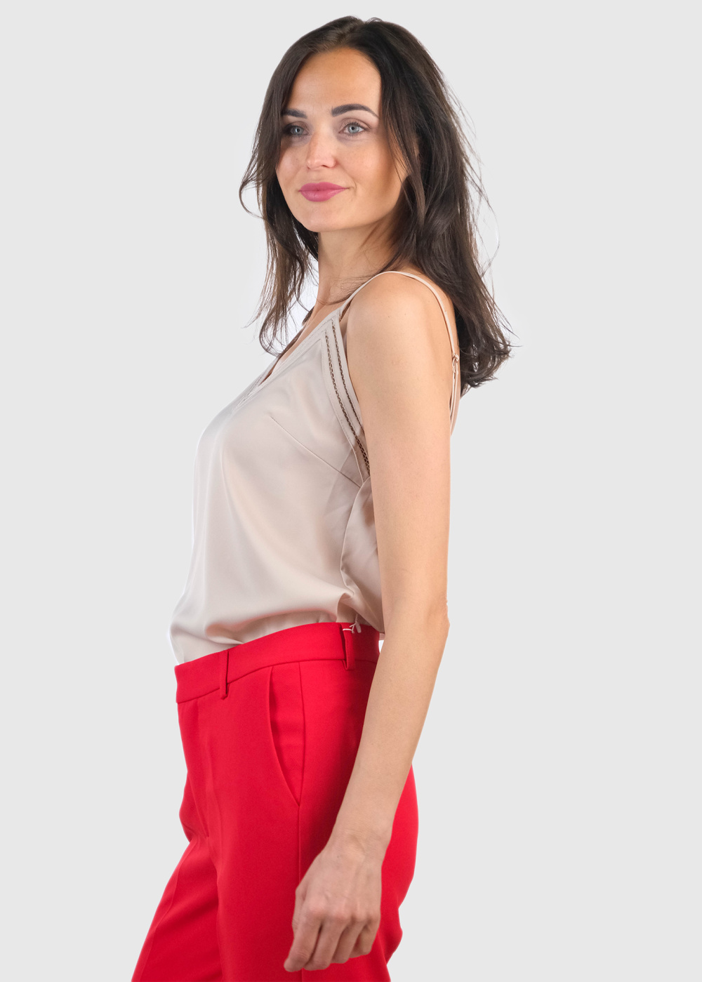 Reyes bēšs tops ar plānām lencītēm