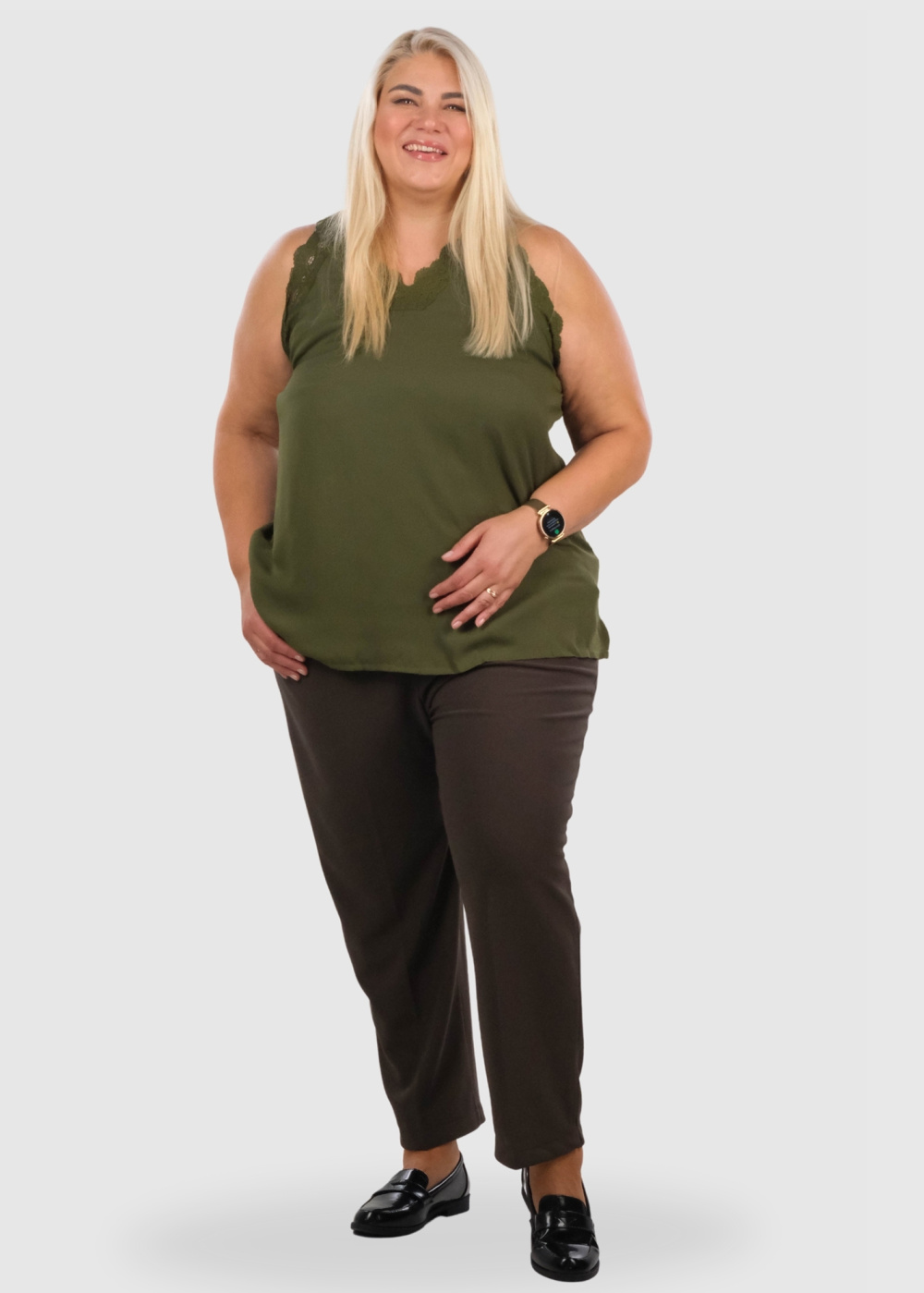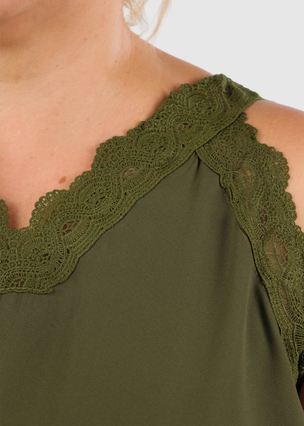 Karina Lielo izmēru haki tops ar mežģīņu detaļām