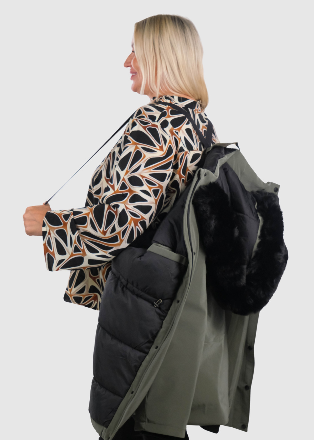 Papildus informācija: Virsjaka ir ūdensnecaurlaidīga, iekšpusē iestrādātas elastīgas saites ērtākai virsjakas nešanai.