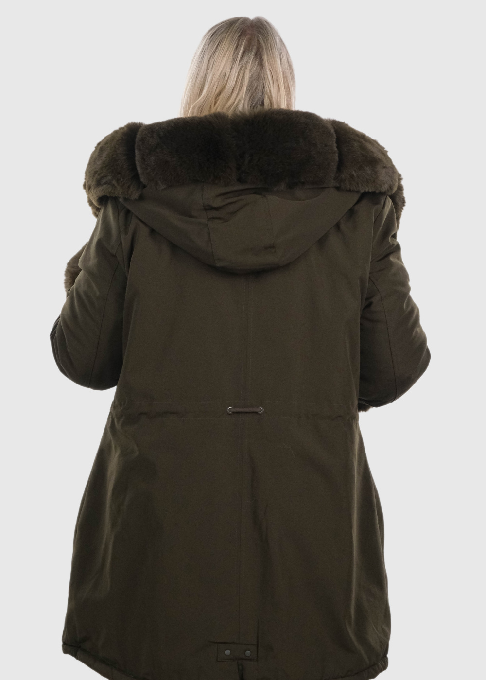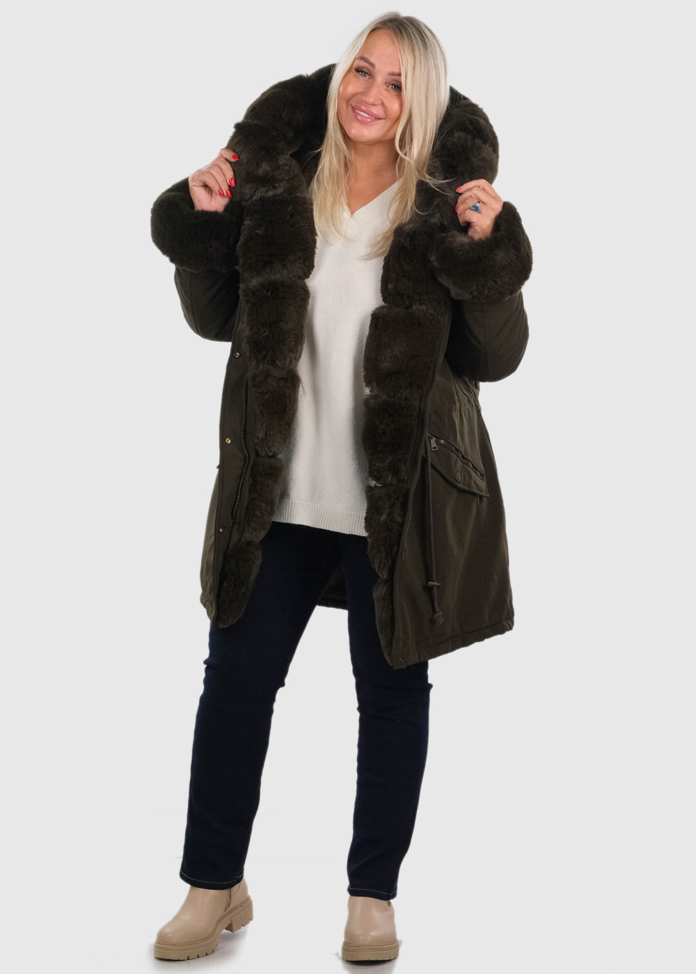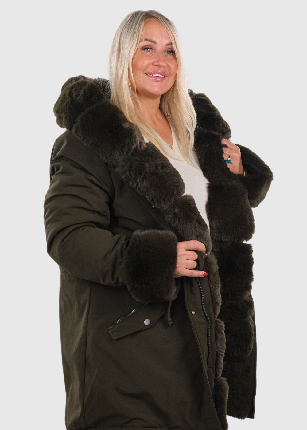 Ilaya Lielo izmēru haki jaka ar kažokādas iešuvumiem