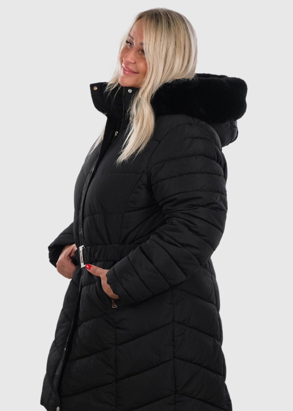 Izel Lielo izmēru melna jaka ar jostu