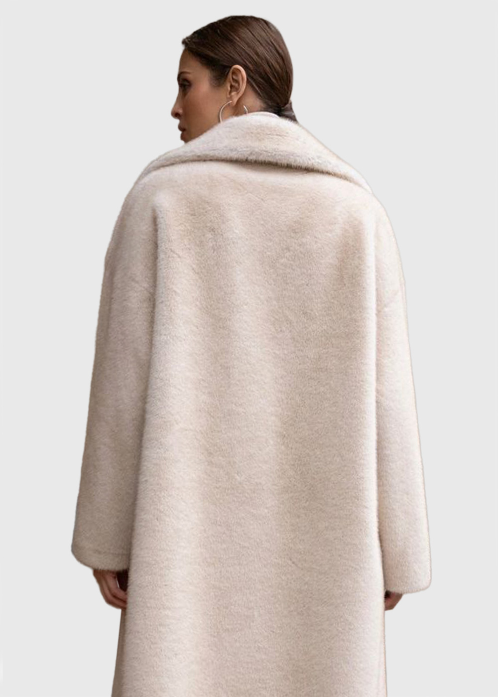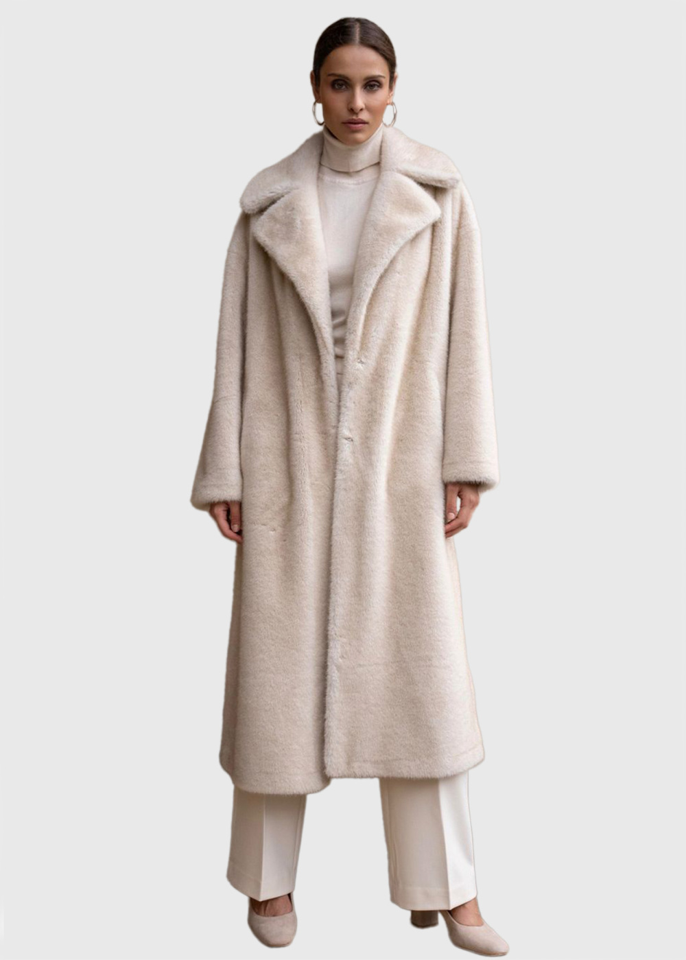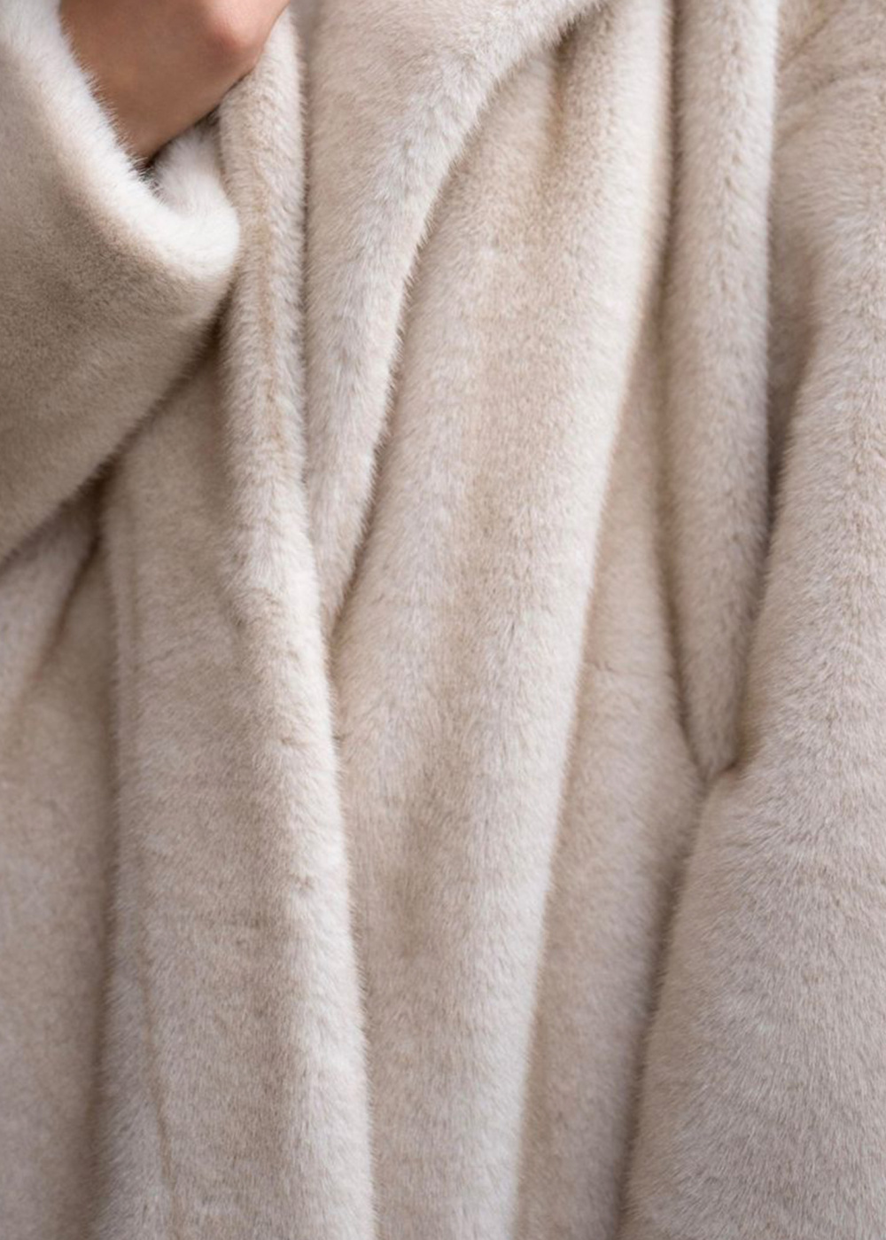 Liza bēšs garais mākslīgās kažokādas mētelis