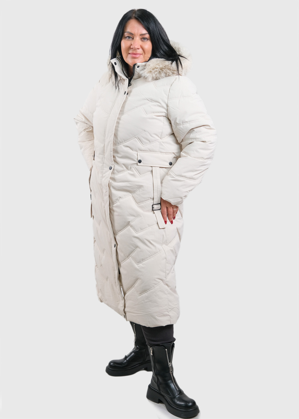Mariah Lielo izmēru gaiši bēša gara jaka
