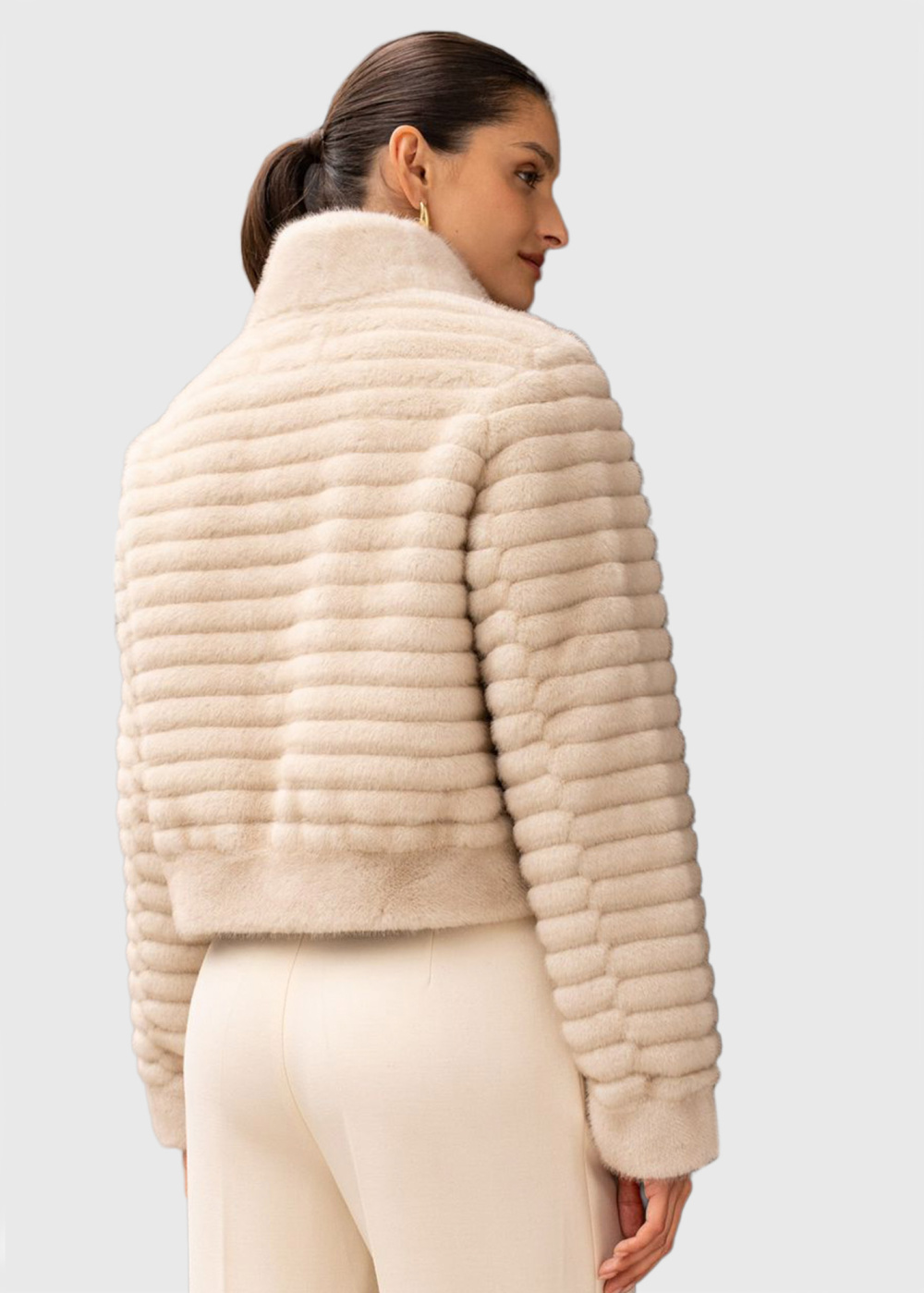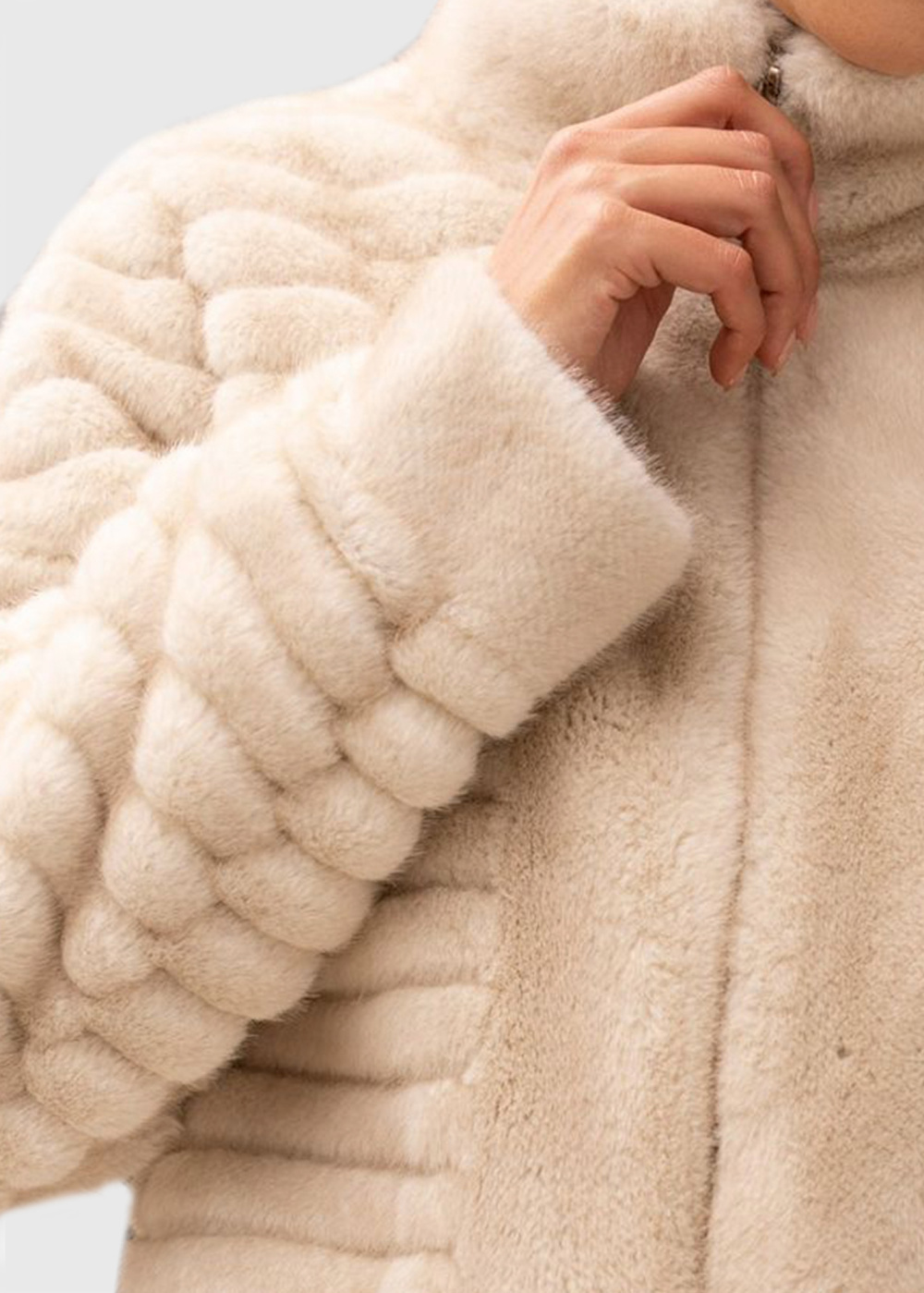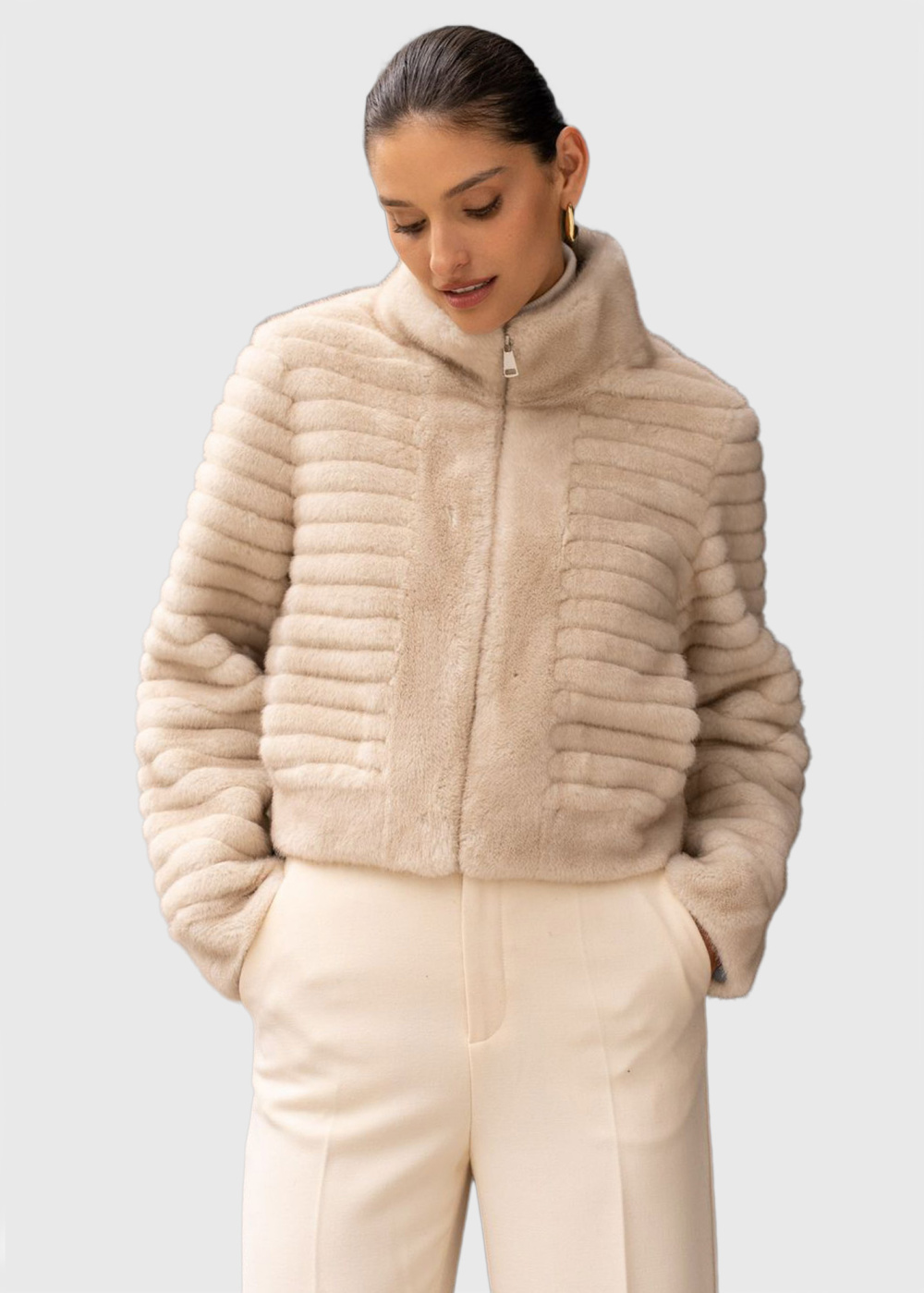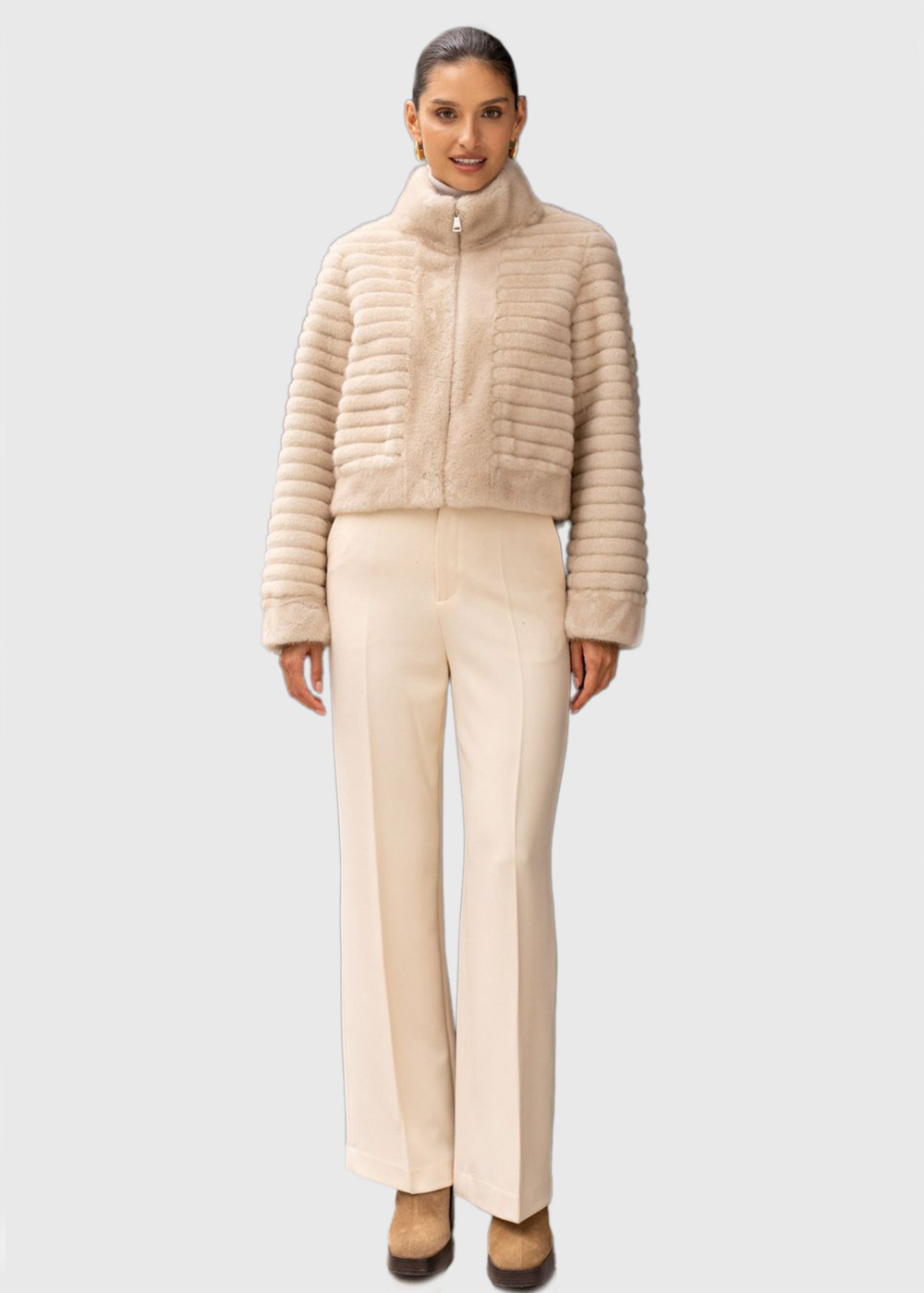 Nijole bēšs īss mākslīgās kažokādas mētelis