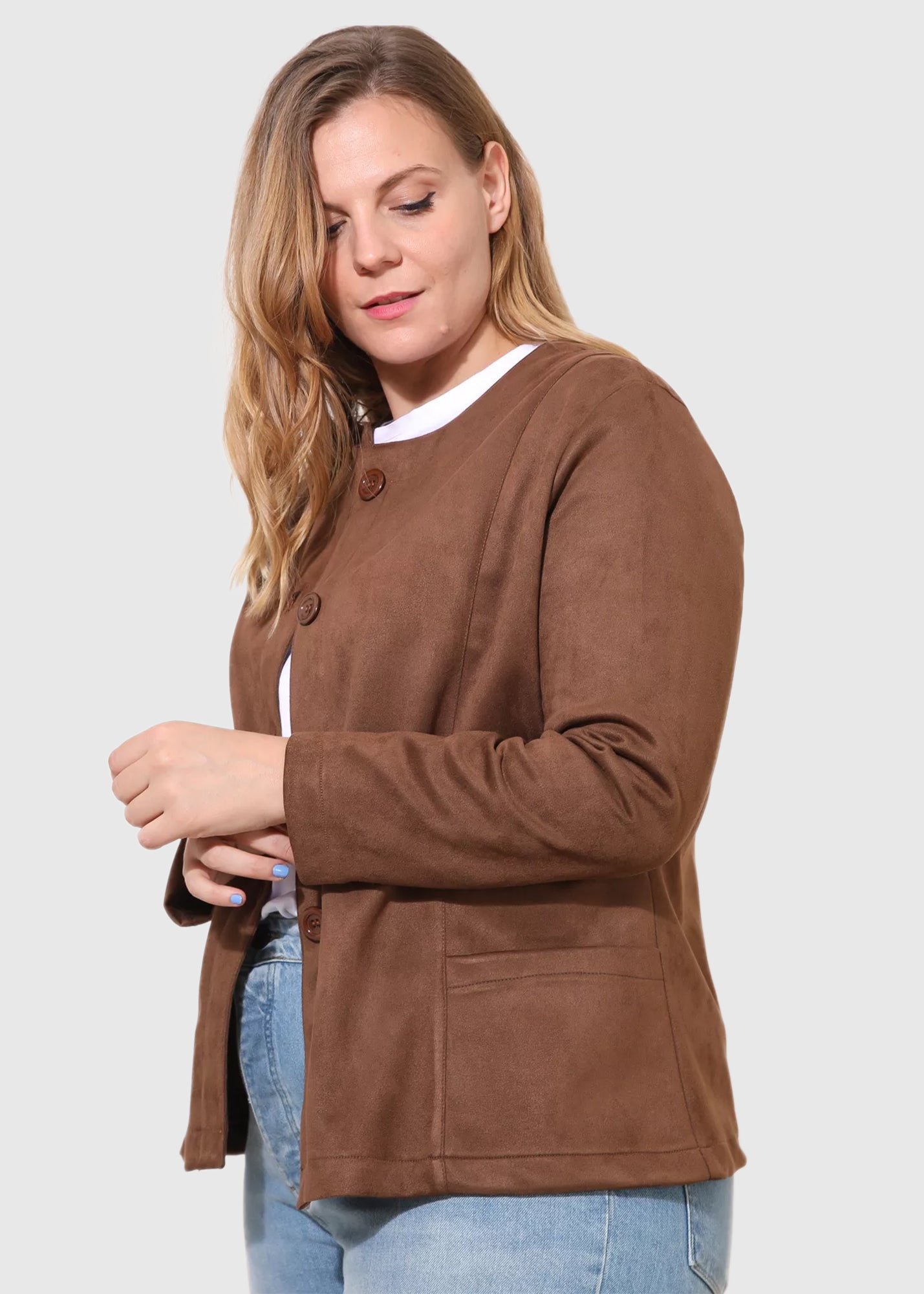 Alfonsina Lielo izmēru brūna sieviešu žakete