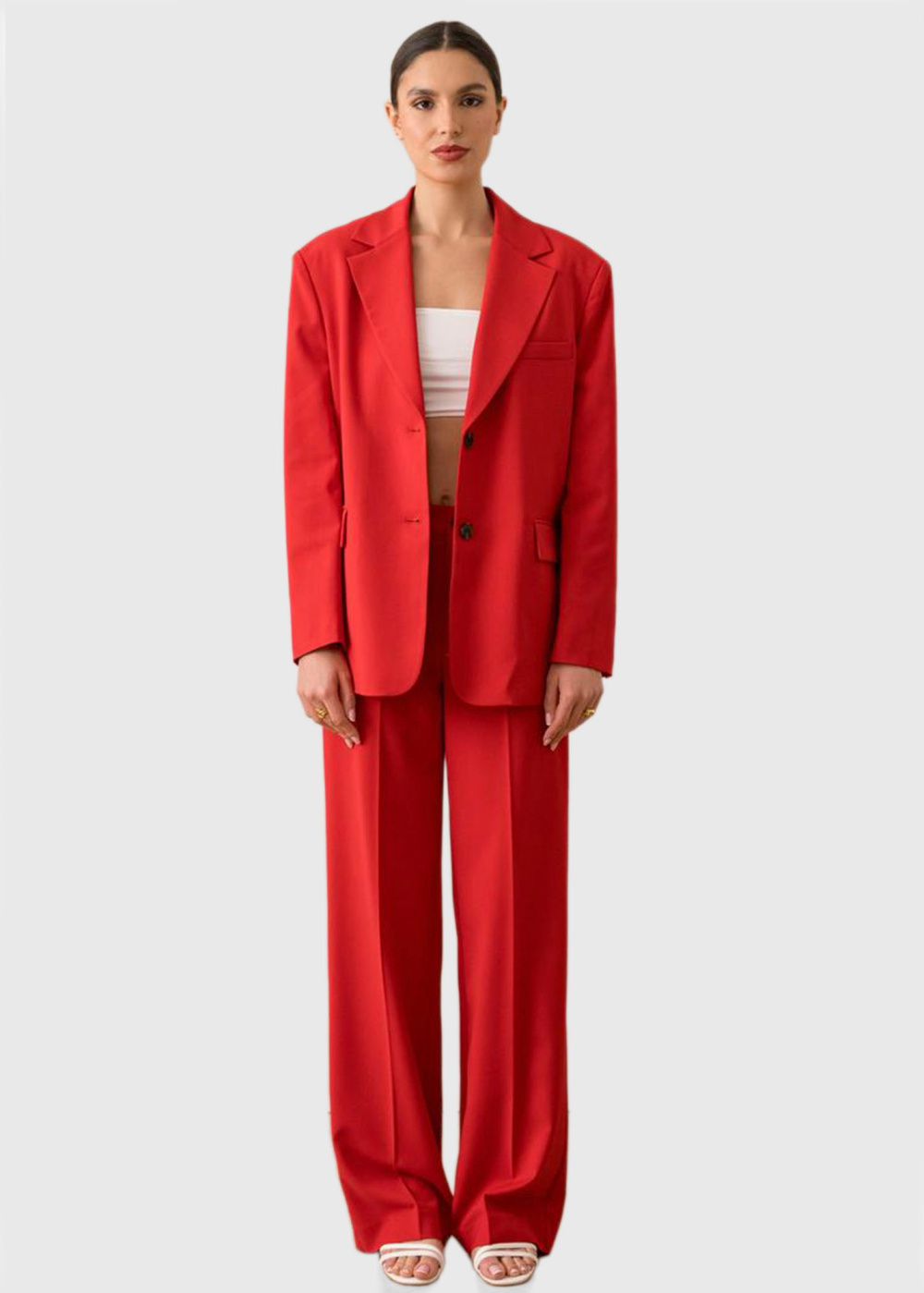 Andreina sarkana brīva piegriezuma žakete