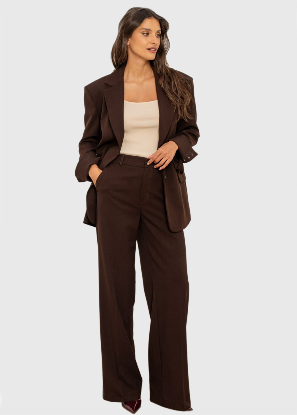 Samara tumši brūna brīva piegriezuma žakete