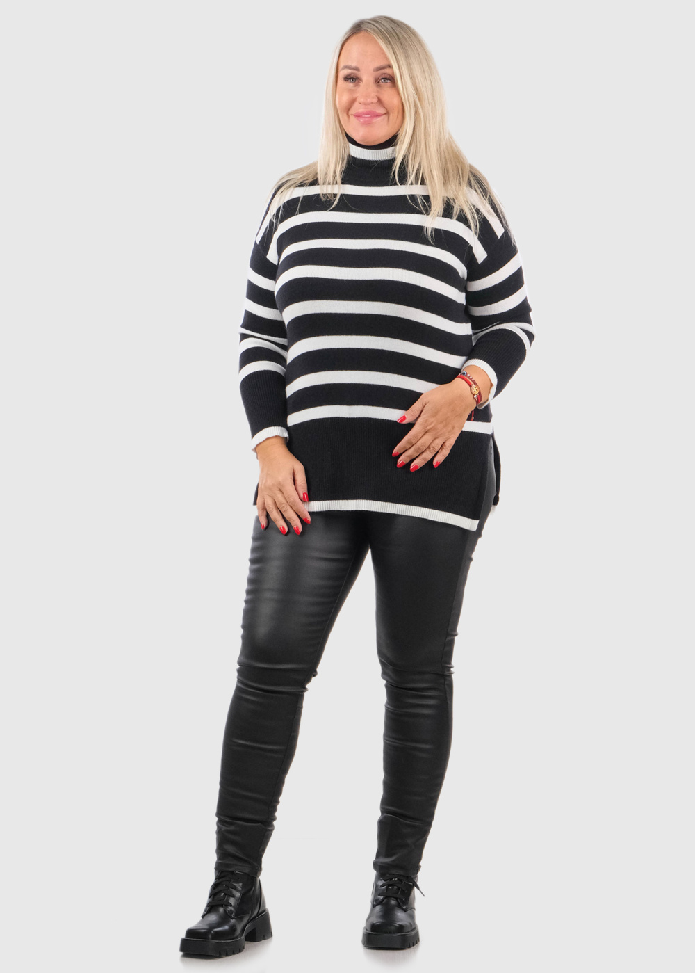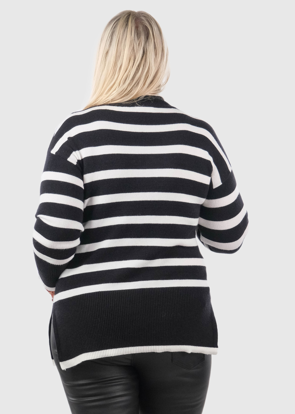 Elva Lielo izmēru melns strīpains džemperis