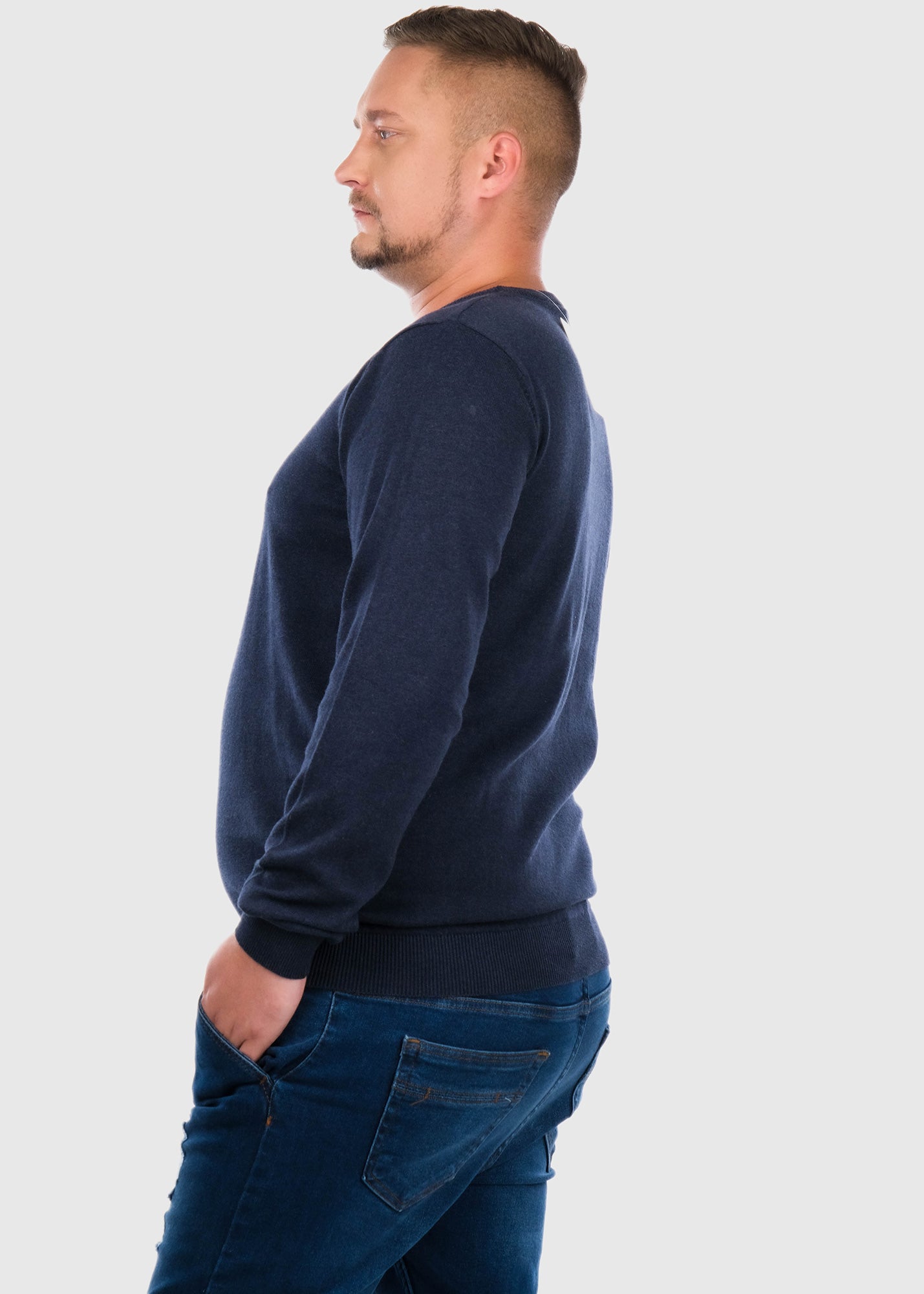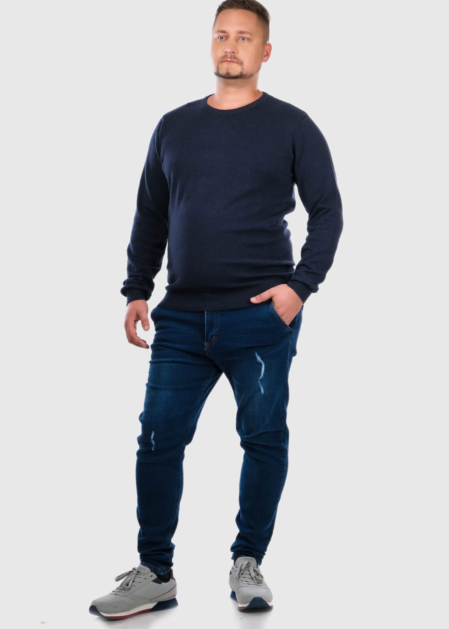Ettore Lielo izmēru tumši zils džemperis ar apļveida izgriezumu
