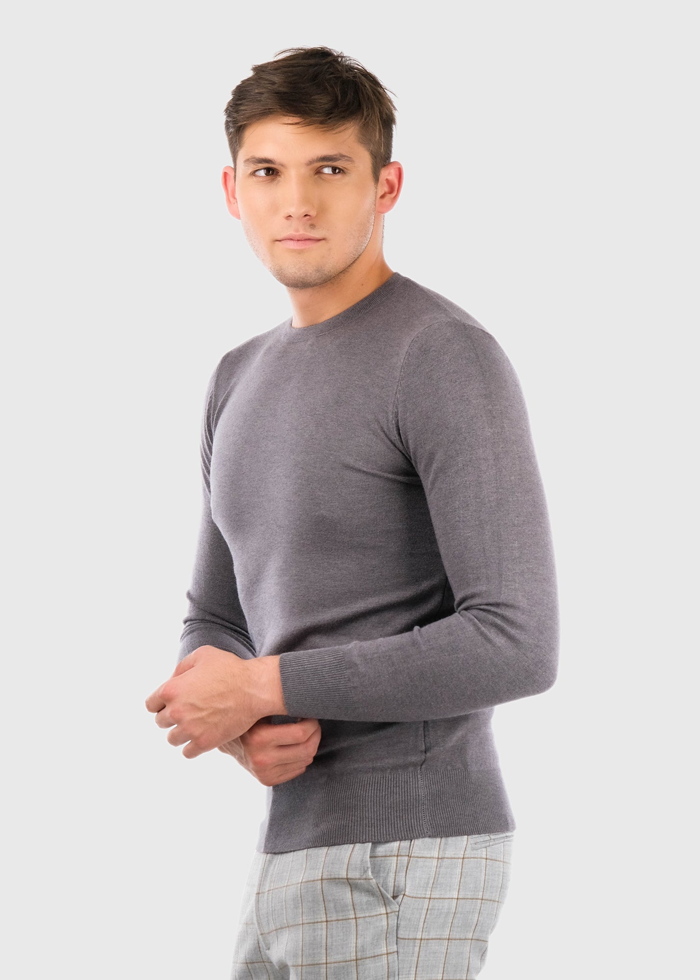 Gianni tumši pelēks vīriešu džemperis ar apaļu izgriezumu