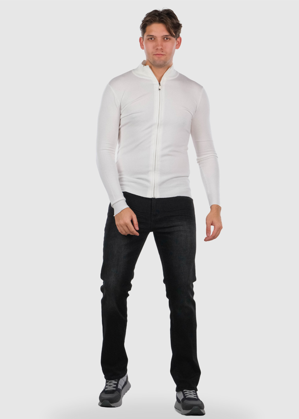 Gilles balts vīriešu džemperis ar rāvējslēdzēju