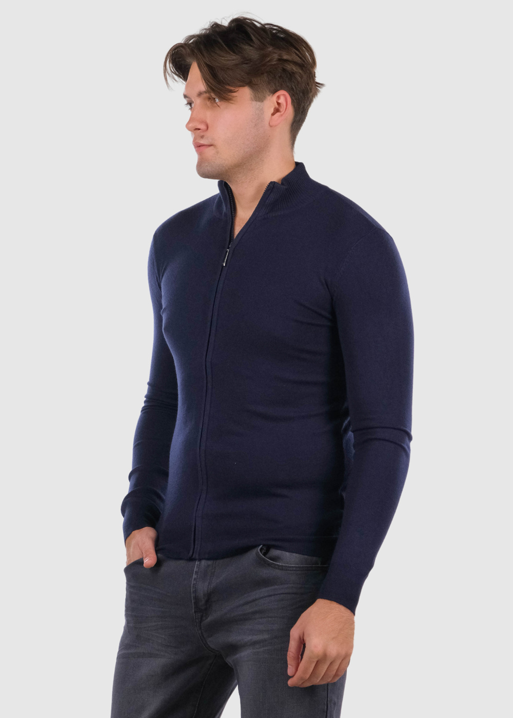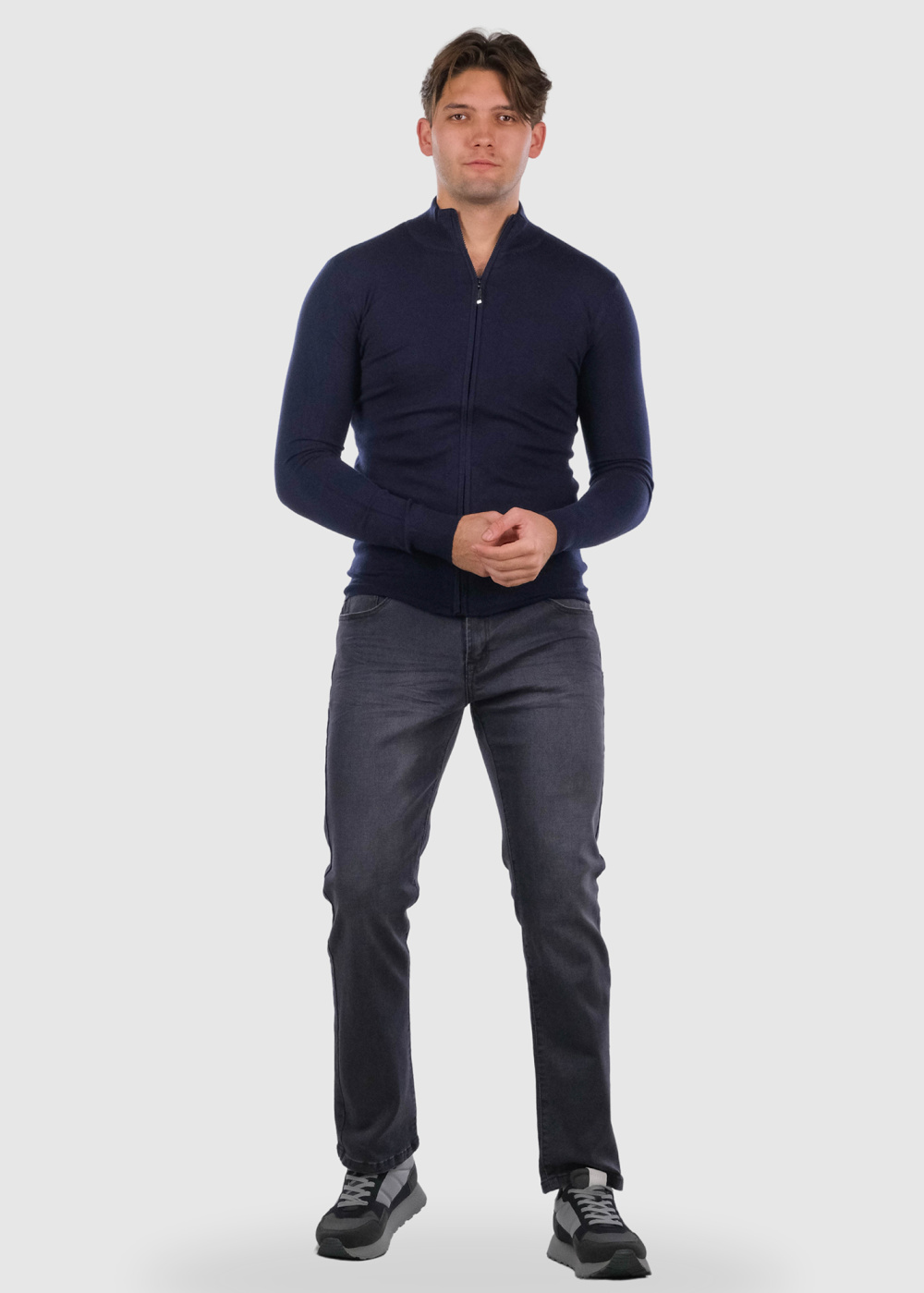 Gilles tumši zils vīriešu džemperis ar rāvējslēdzēju