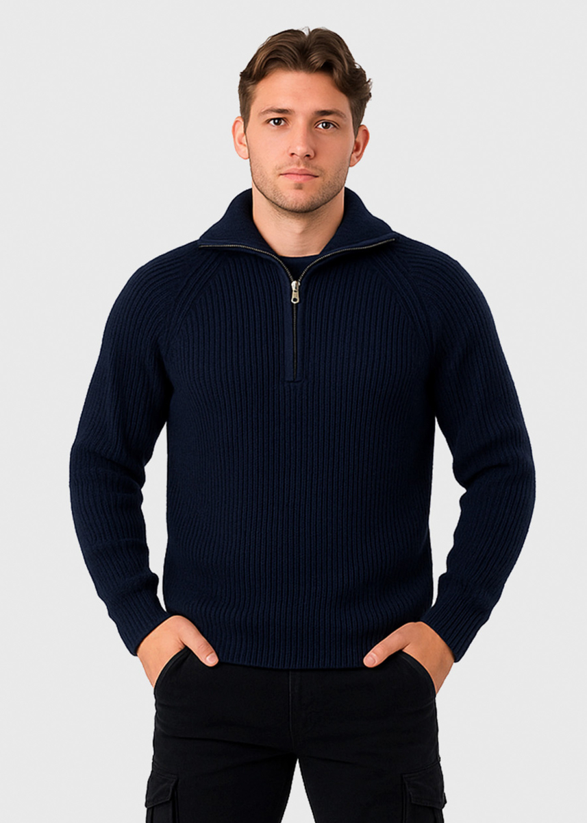 Tumši zils džemperis ar rāvējslēdzēju