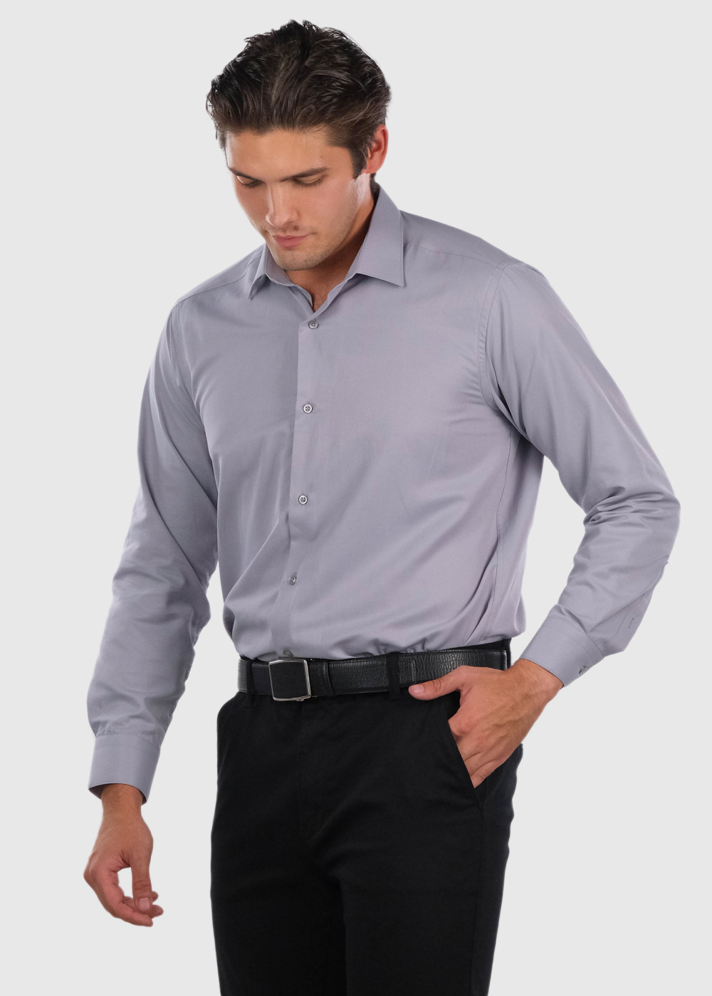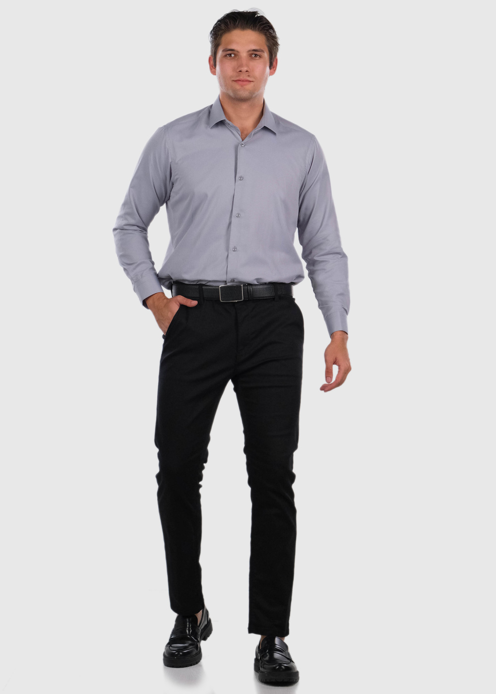 Fadxel pelēks klasiskais krekls ar garām piedurknēm