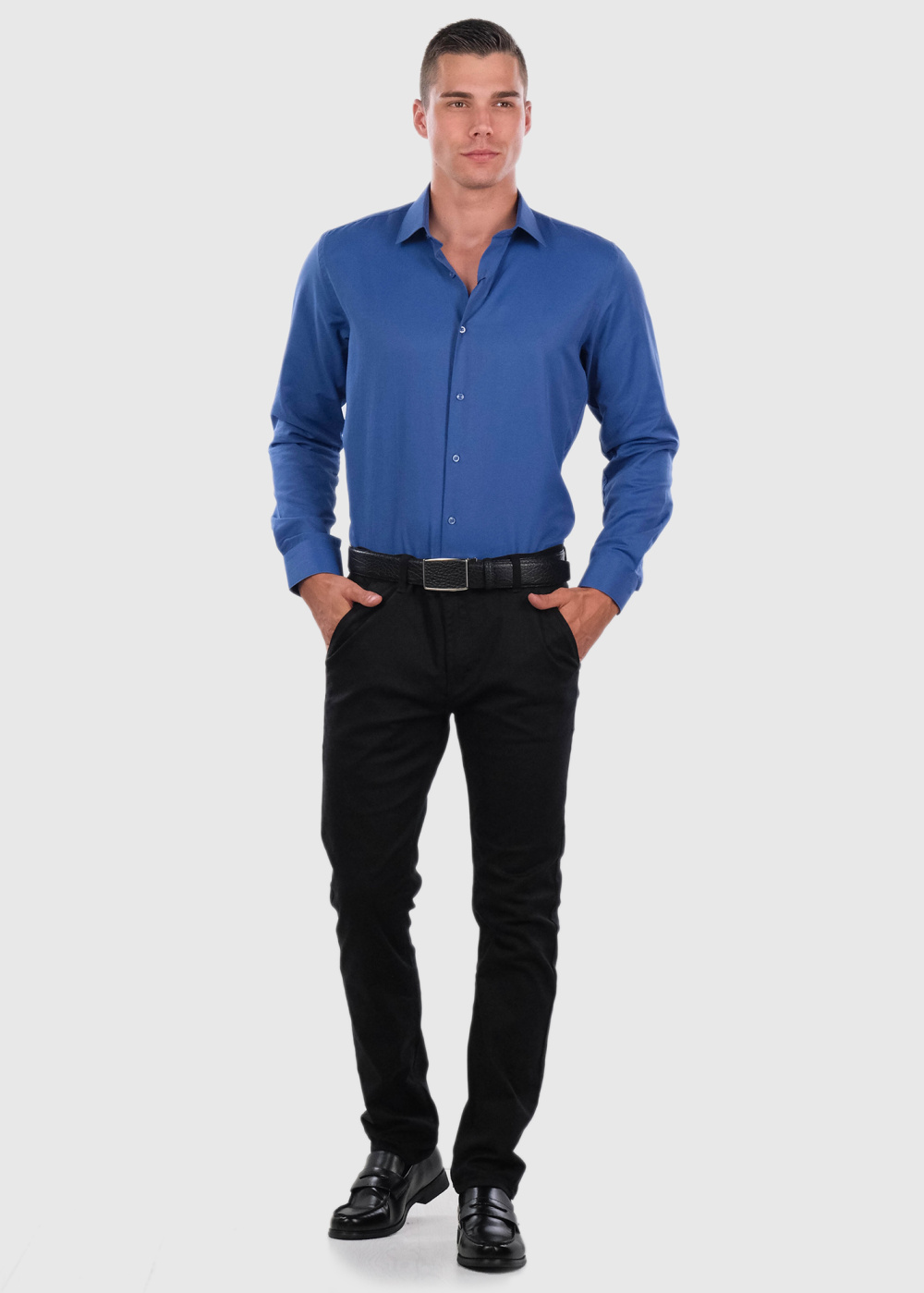 Fahd zils pieguļošais krekls ar garām piedurknēm