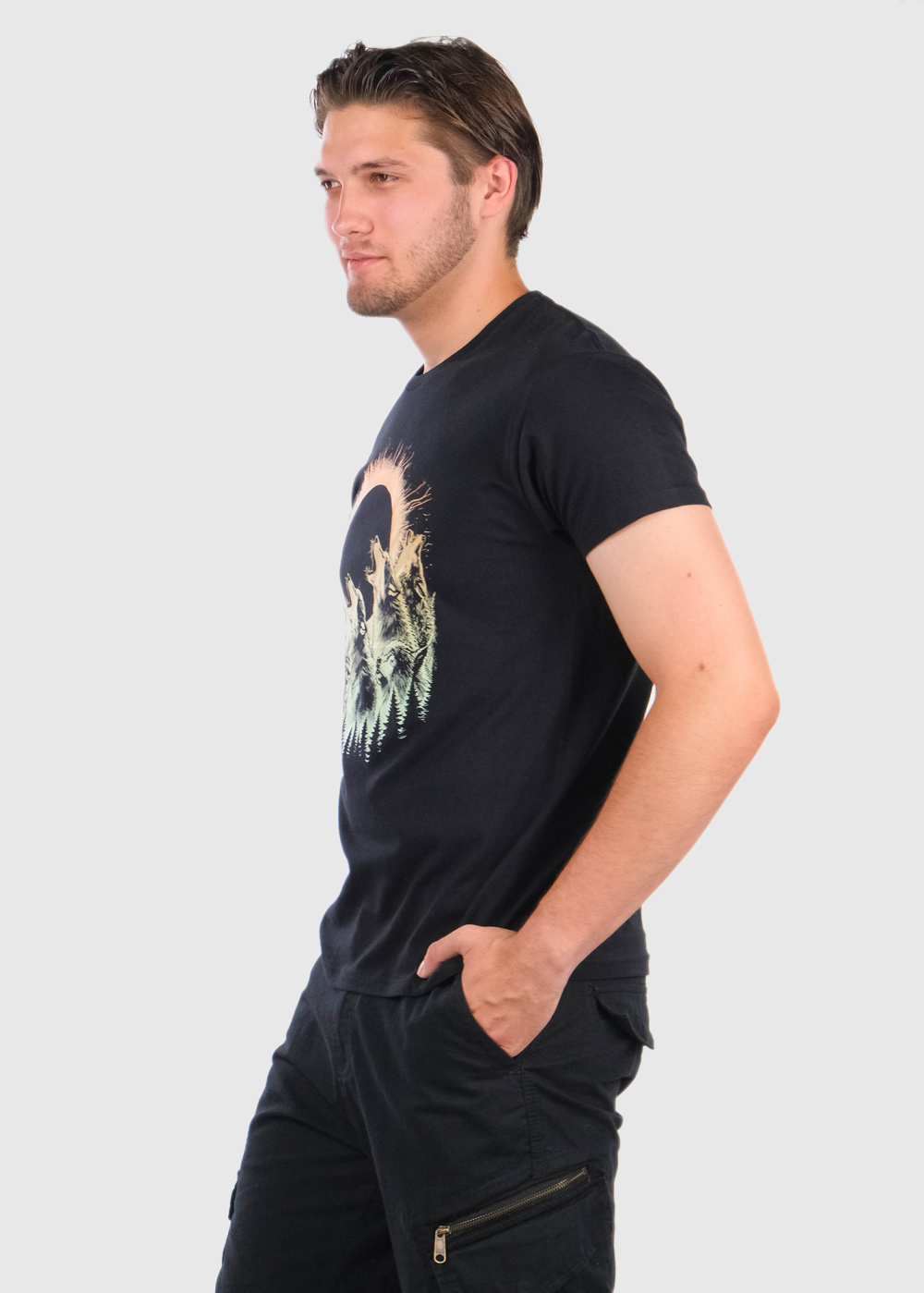 Adham melns vīriešu t-krekls ar rakstu