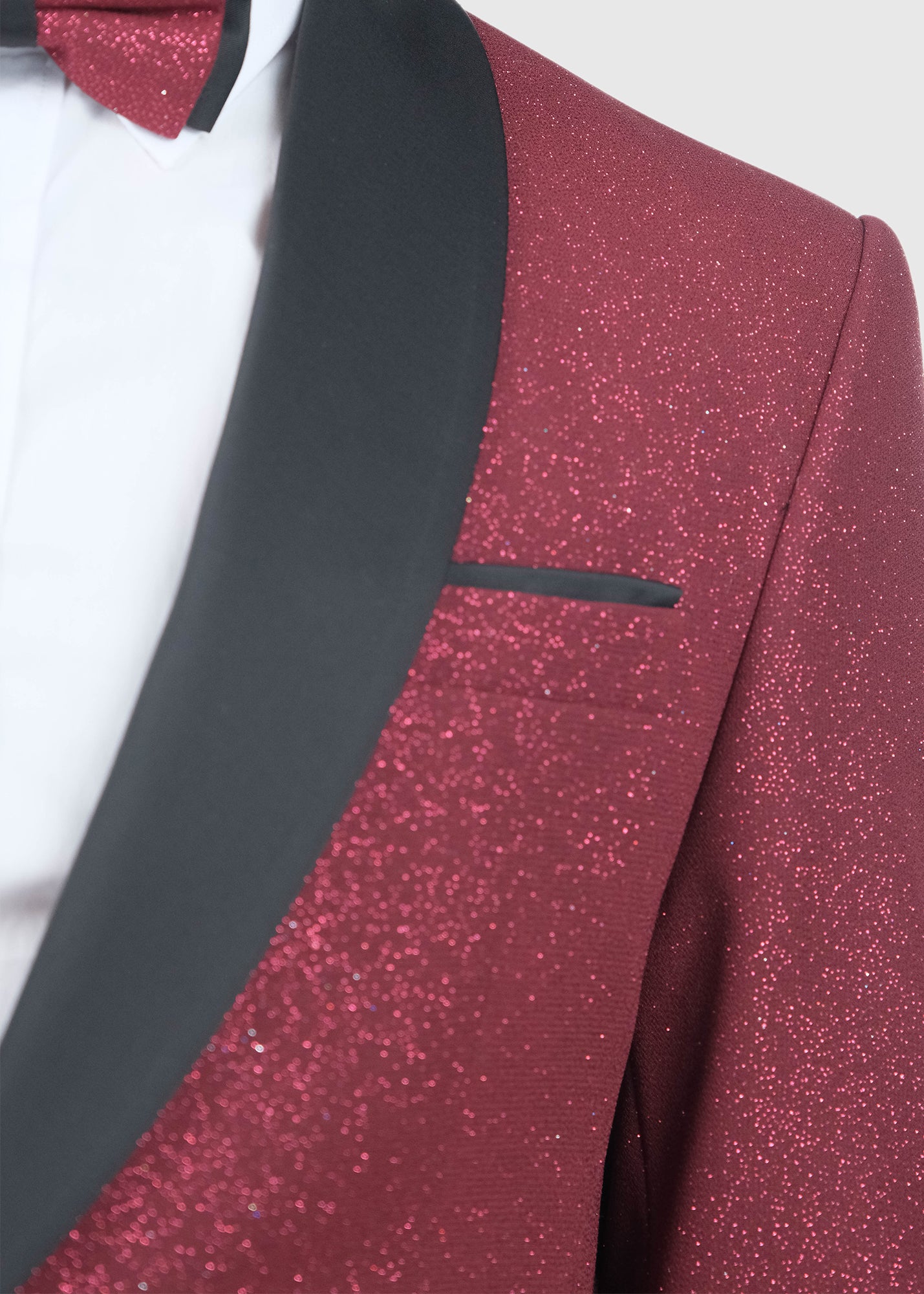 Adamo sarkans pieguļošais uzvalks ar spīdumiem