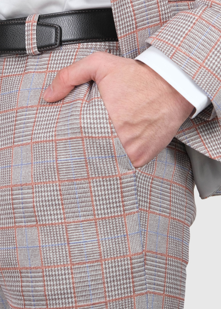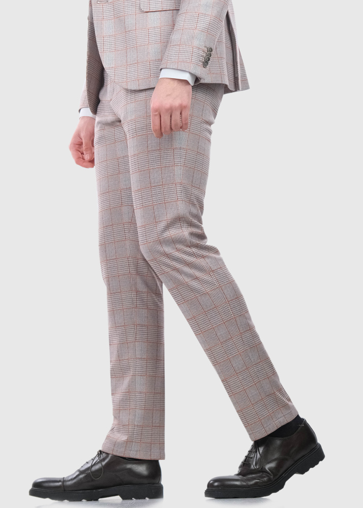 Bastiano Slim Fit bēšas vīriešu rūtainas bikses