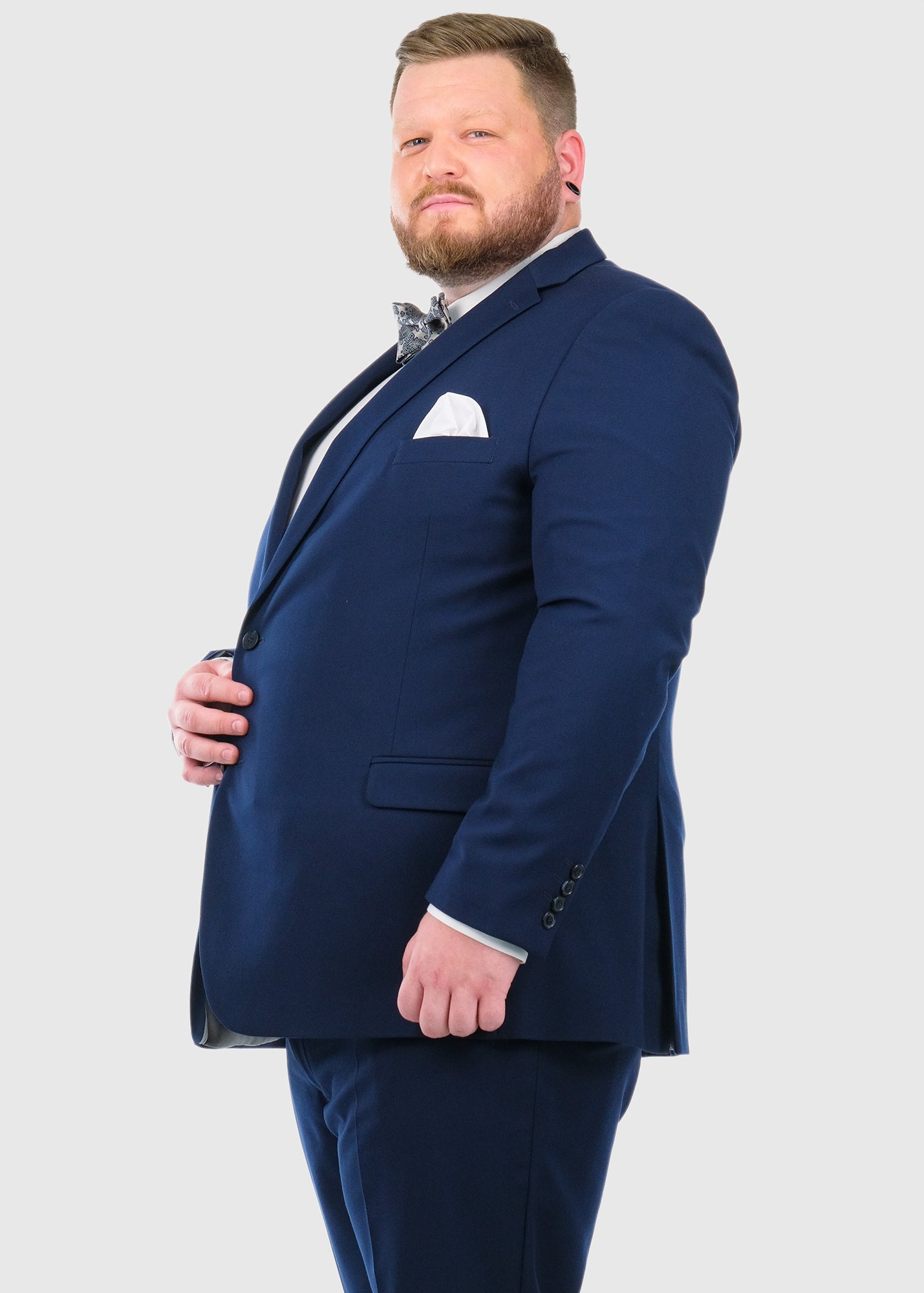 Dave Regular Fit Lielo izmēru zils vīriešu uzvalks ar vilnu