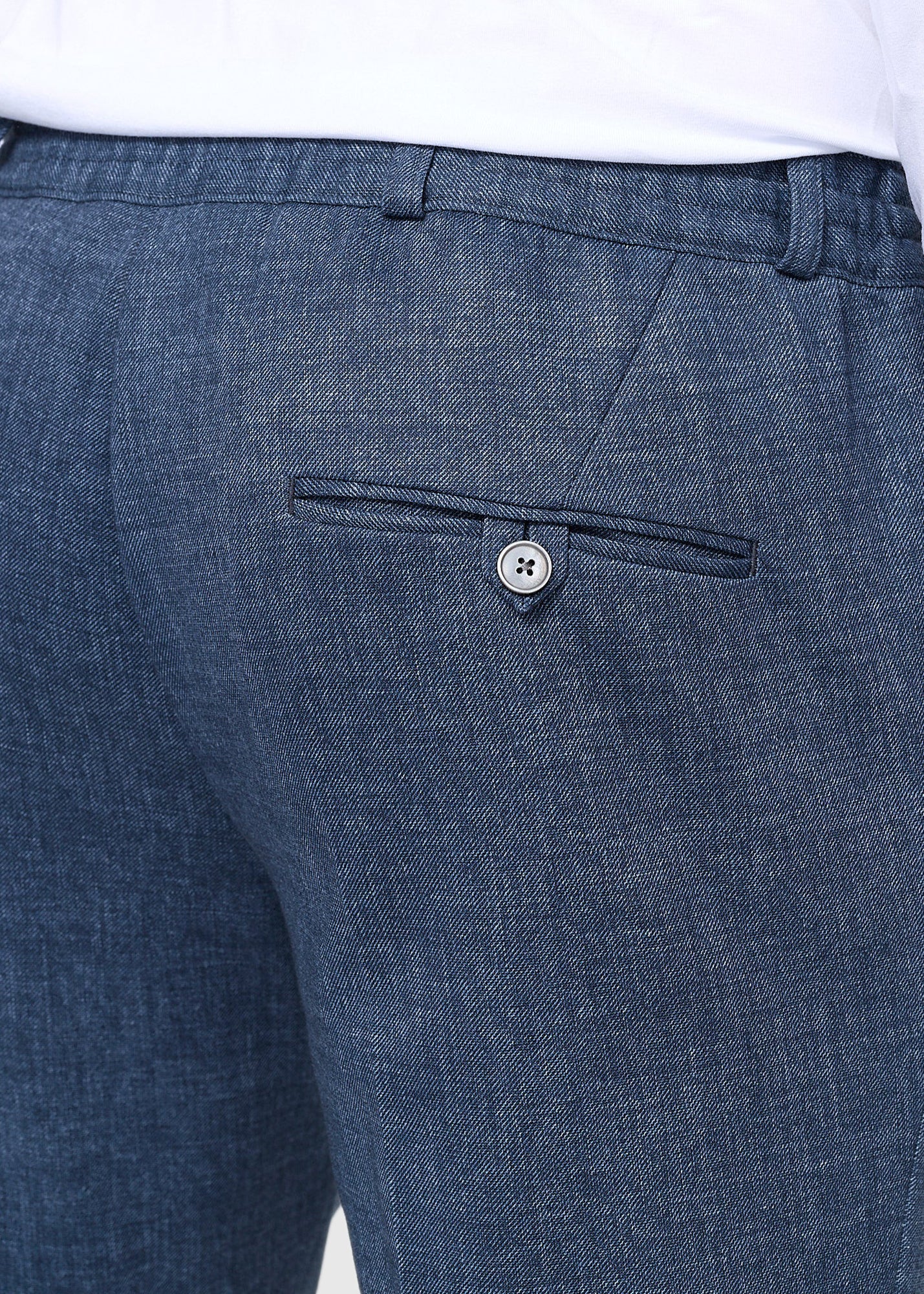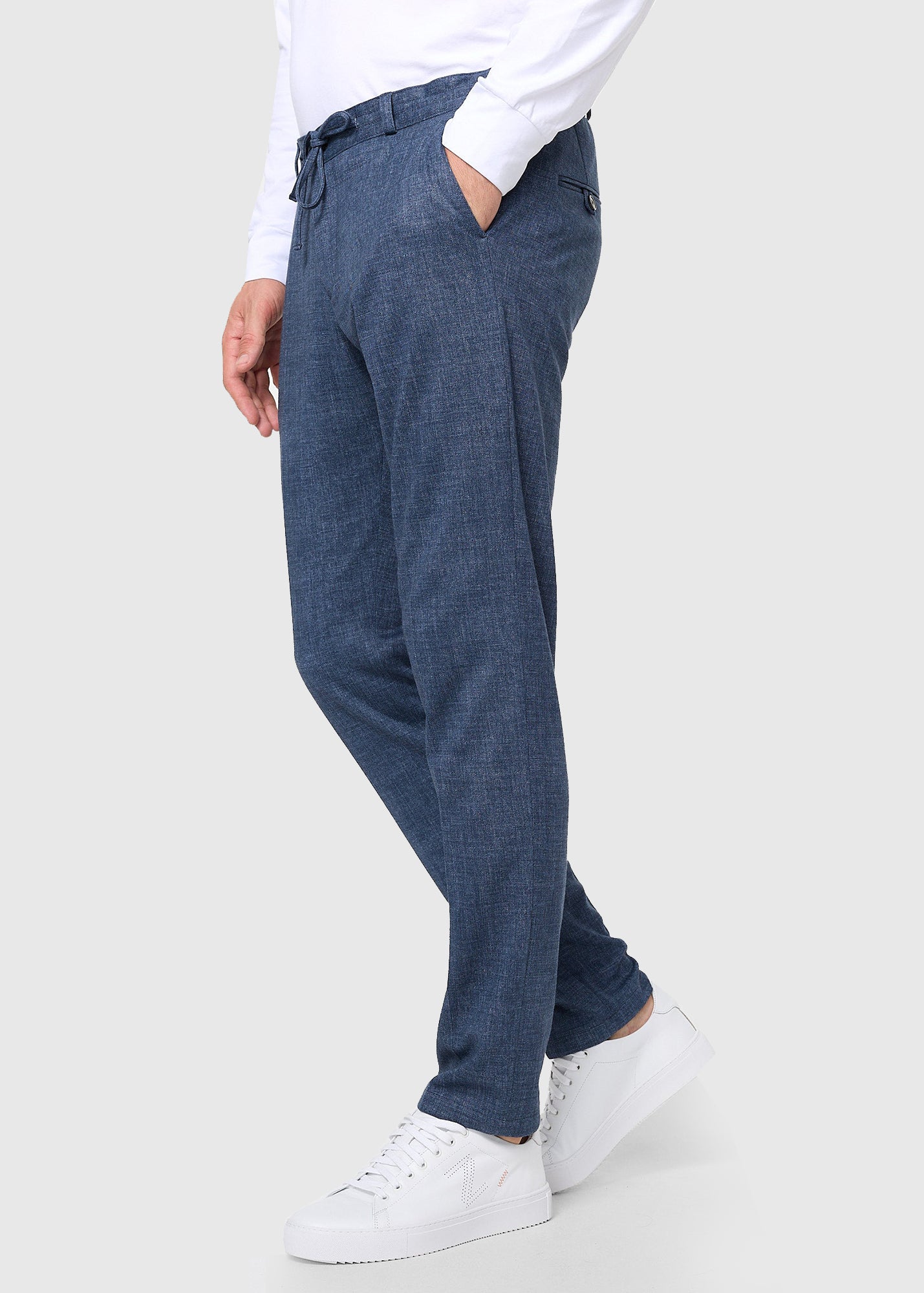 Elio Slim Fit zilas vīriešu bikses ar aukliņas aizdari