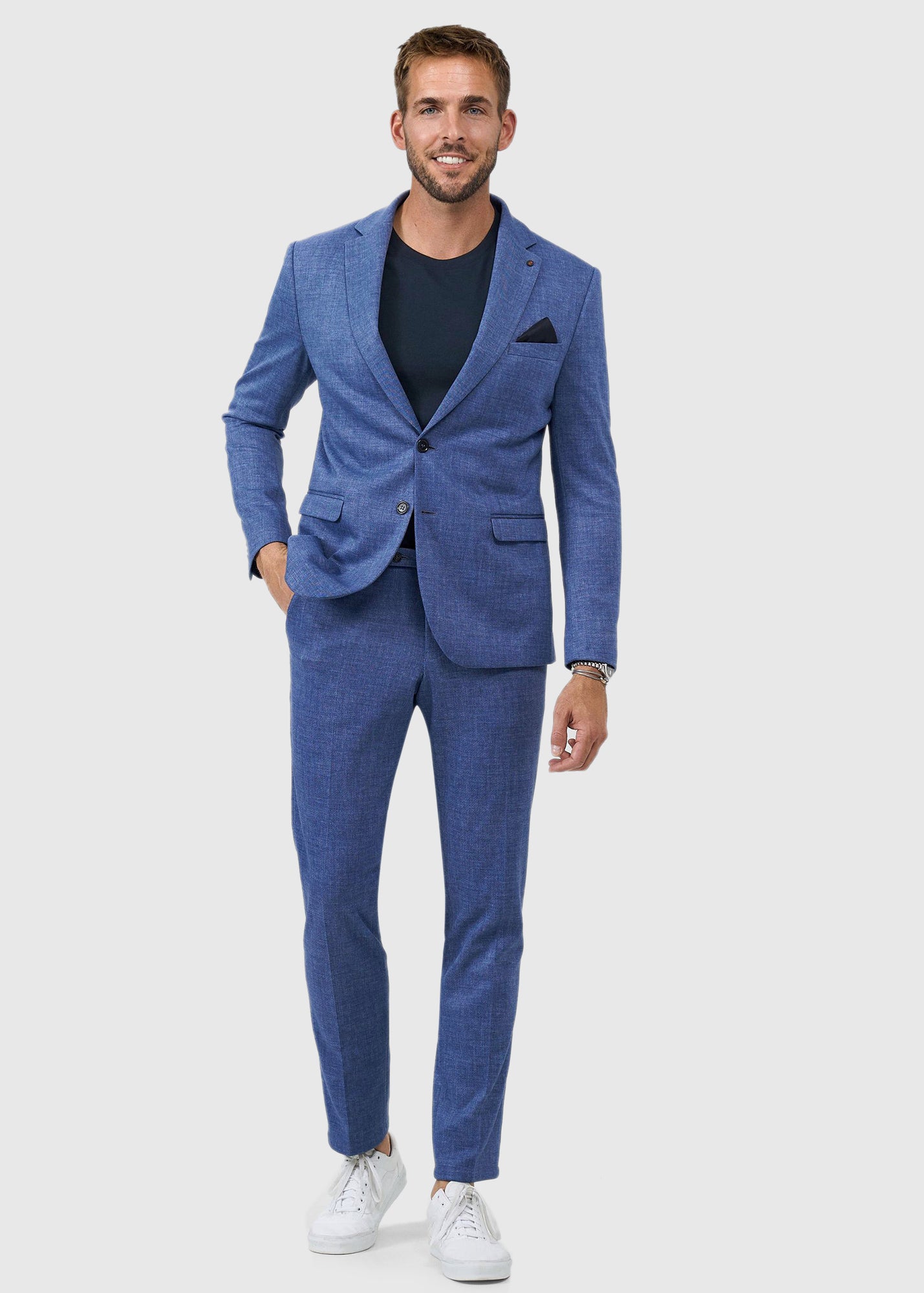 Landon zils pieguļošais uzvalks ar vilnu Landon zils pieguļošais uzvalks ar vilnu - back Landon zils pieguļošais uzvalks ar vilnu