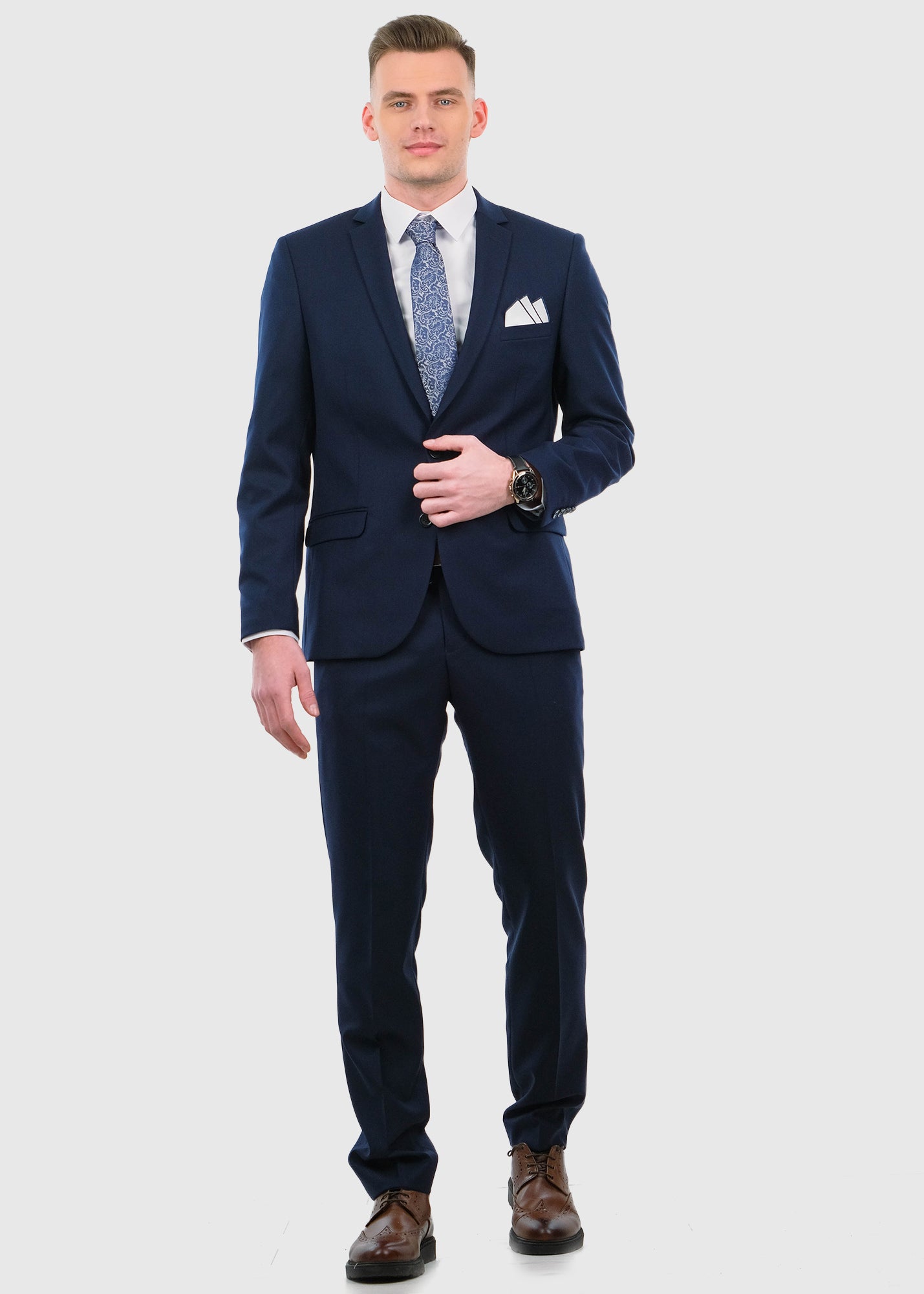 Raffi tumši zils pieguļošais uzvalks ar vilnu