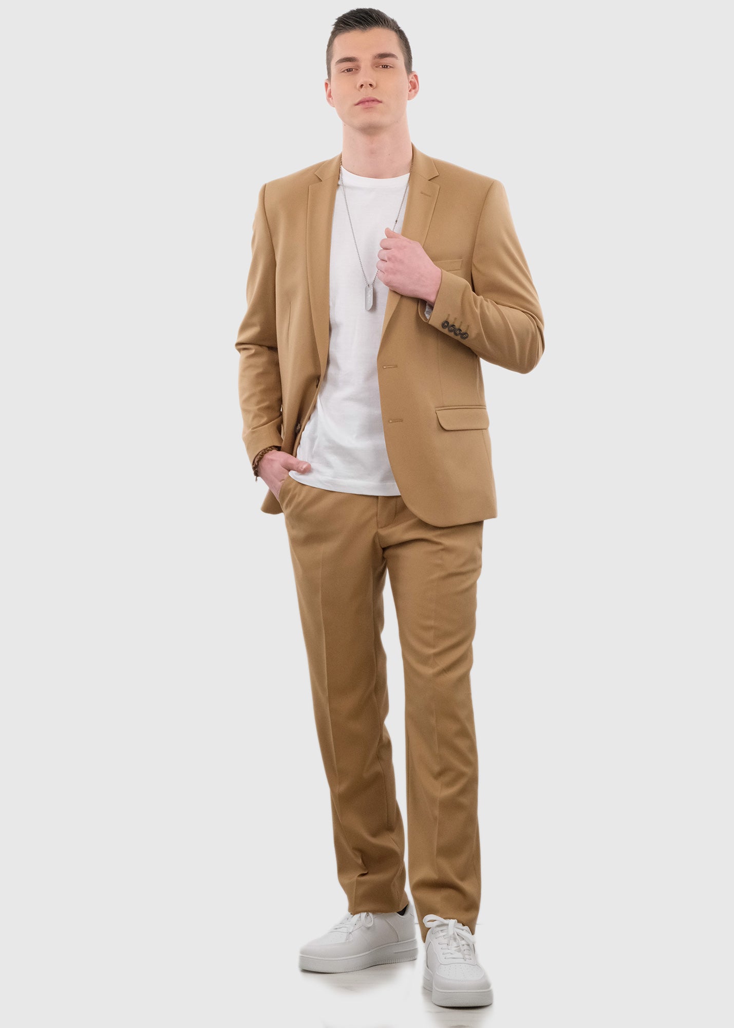 Annunziato bēšs pieguļošais uzvalks