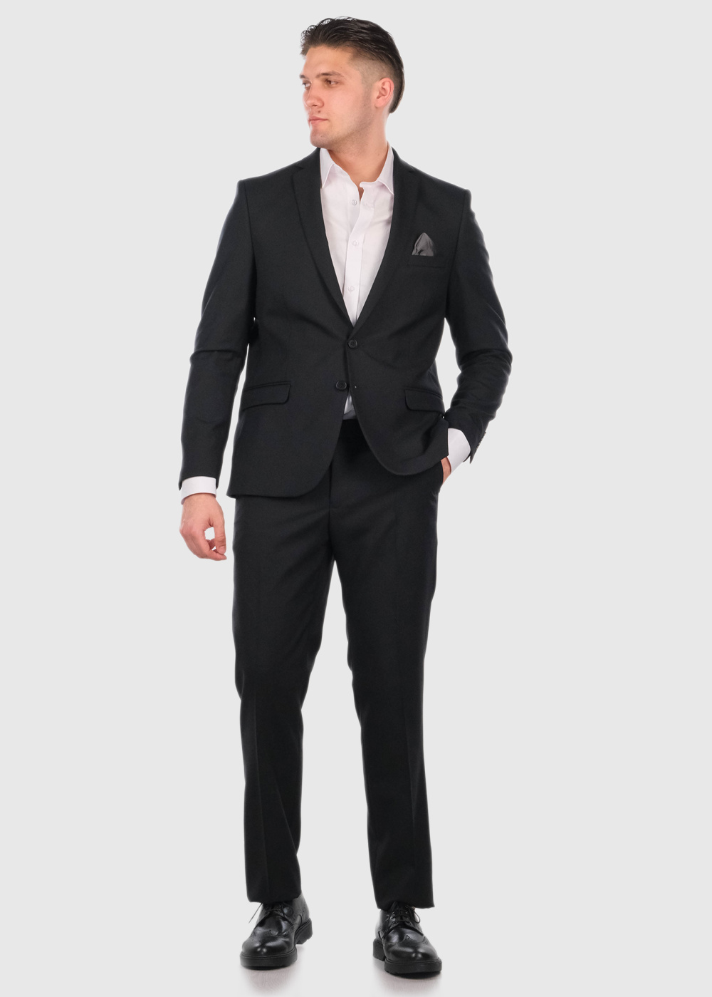 Cornelio melns pieguļošs uzvalks ar vilnu