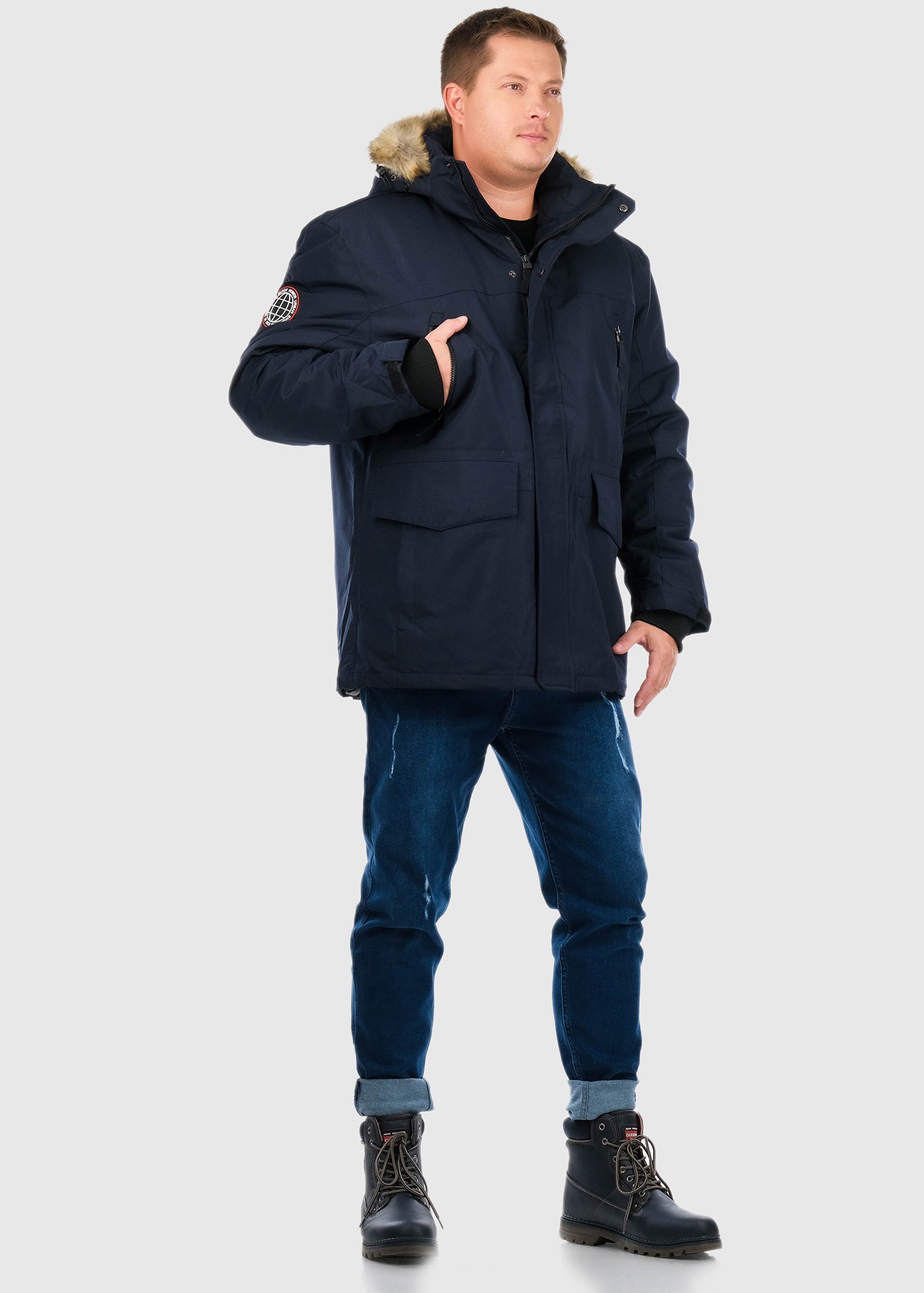 Elvio Lielo izmēru tumši zila vīriešu parka ar kažokādu